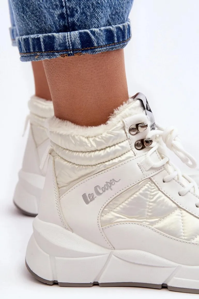 Klasyczne botki damskie marki Lee Cooper zostały wykonane z połączenia eko skóry i materiału tekstylnego. Osadzone na platformie z gumowego tworzywa. Model z cholewką za kostkę. Dodatkowo zapiętek jest usztywniany. Botki posiadają solidne sznurowanie umożliwiające odpowiednie dopasowanie do tęgości nogi. Przy wyborze rozmiaru prosimy sugerować się tabelą rozmiarów.