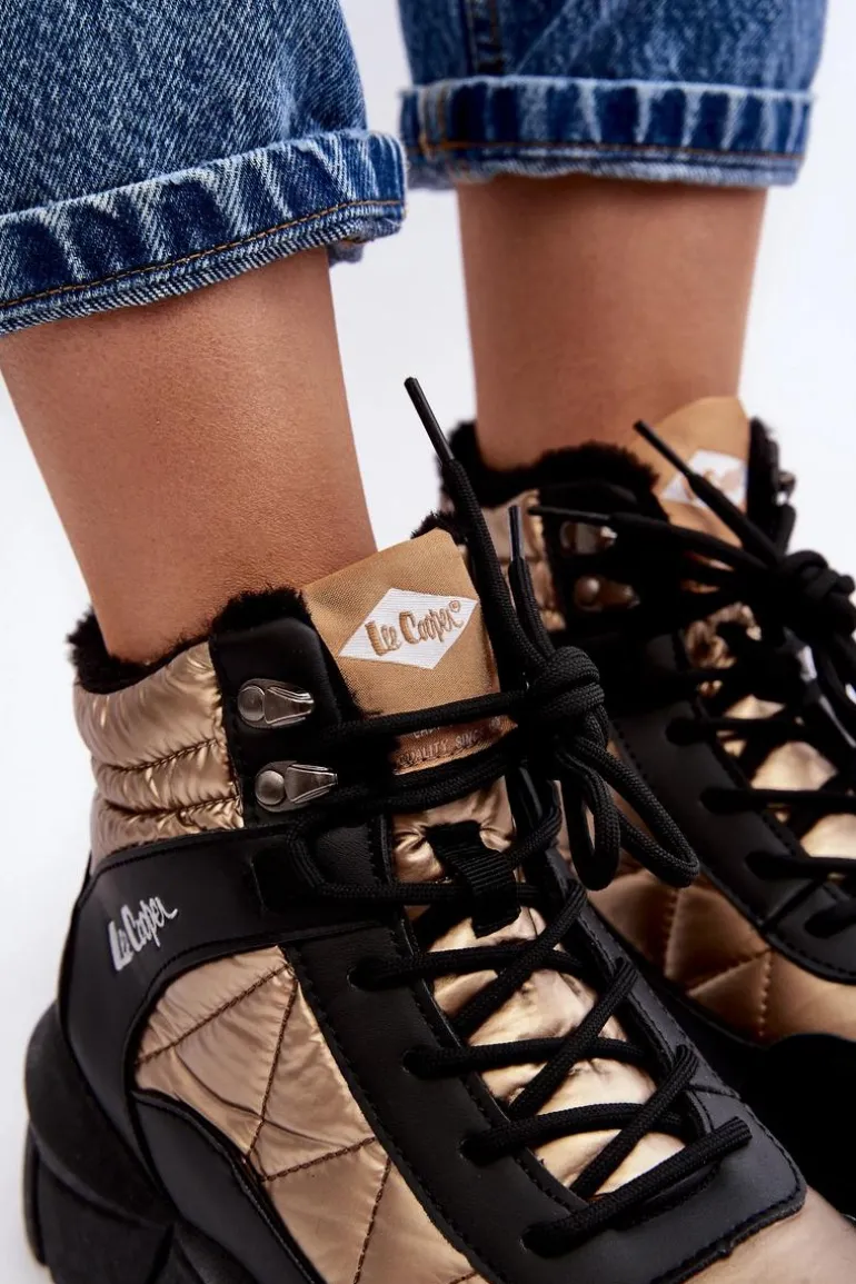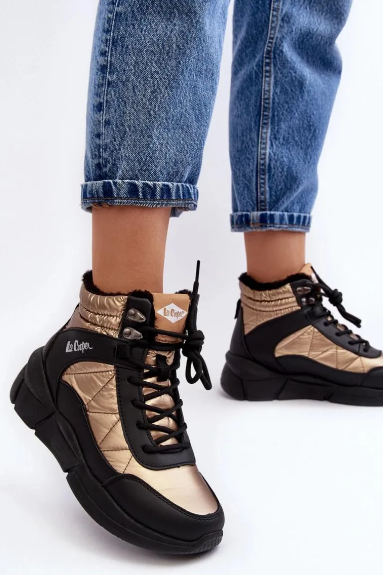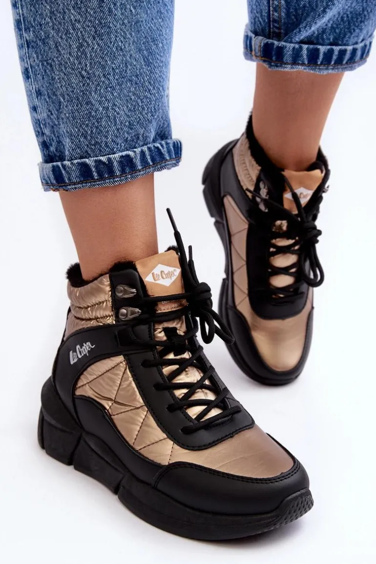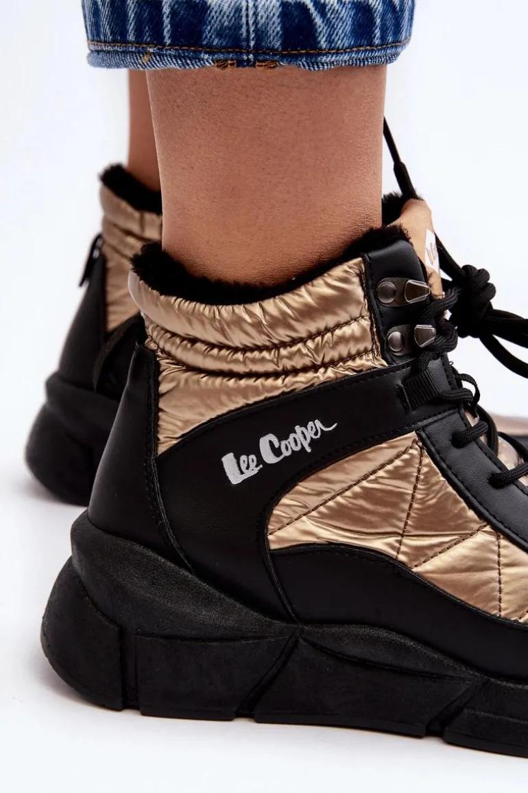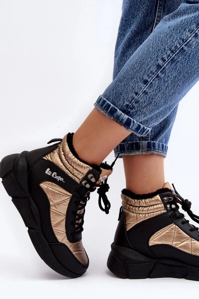 Klasyczne botki damskie marki Lee Cooper zostały wykonane z połączenia eko skóry i materiału tekstylnego. Osadzone na platformie z gumowego tworzywa. Model z cholewką za kostkę. Dodatkowo zapiętek jest usztywniany. Botki posiadają solidne sznurowanie umożliwiające odpowiednie dopasowanie do tęgości nogi. Przy wyborze rozmiaru prosimy sugerować się tabelą rozmiarów.