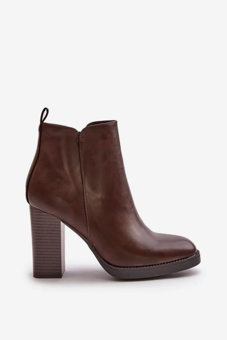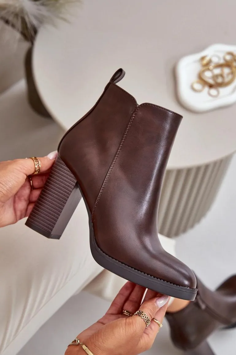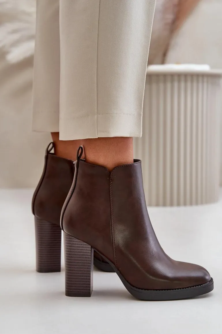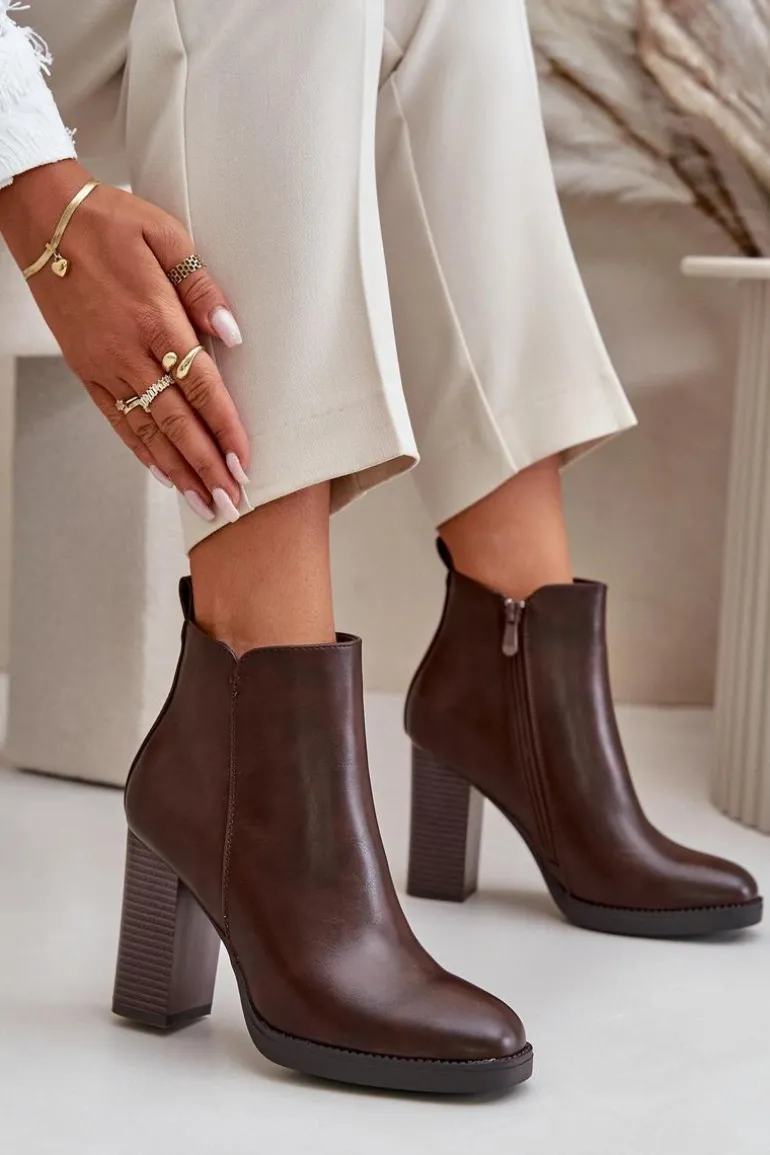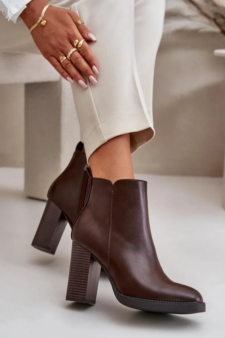 Damskie botki wykonane z eko skóry. Osadzone na słupkowym obcasie. Zapinane na zamek. Środek ocieplony kocem obuwniczym, co sprawia, że model ten świetnie sprawdzi się w chłodniejsze dni. Noski zaokrąglone. Klasyczny fason, który z pewnością dopasujesz do wielu stylizacji! Przy wyborze rozmiaru prosimy sugerować się tabelą rozmiarów.