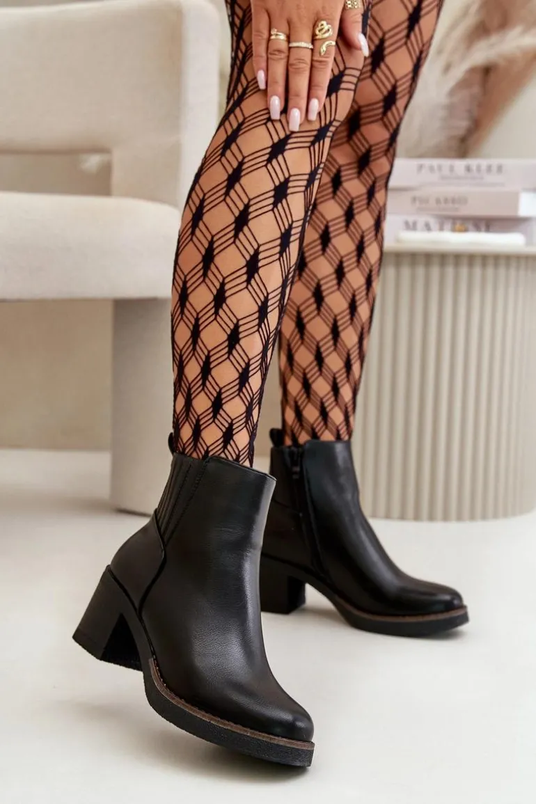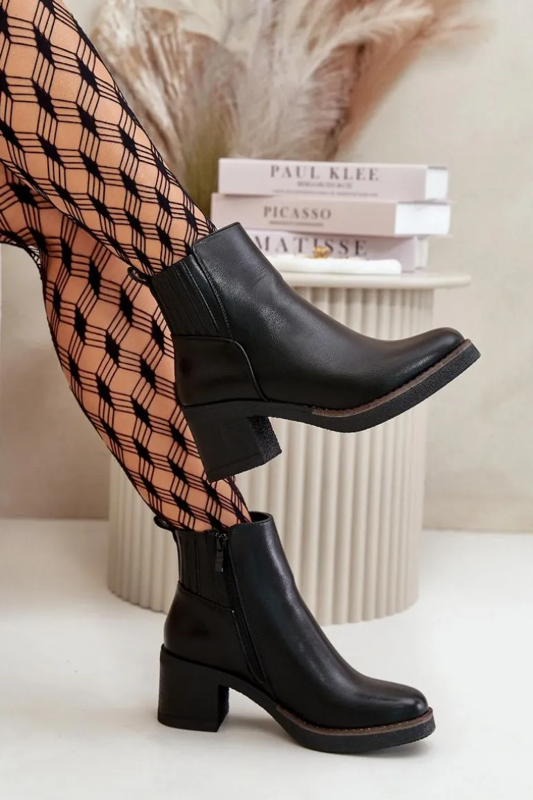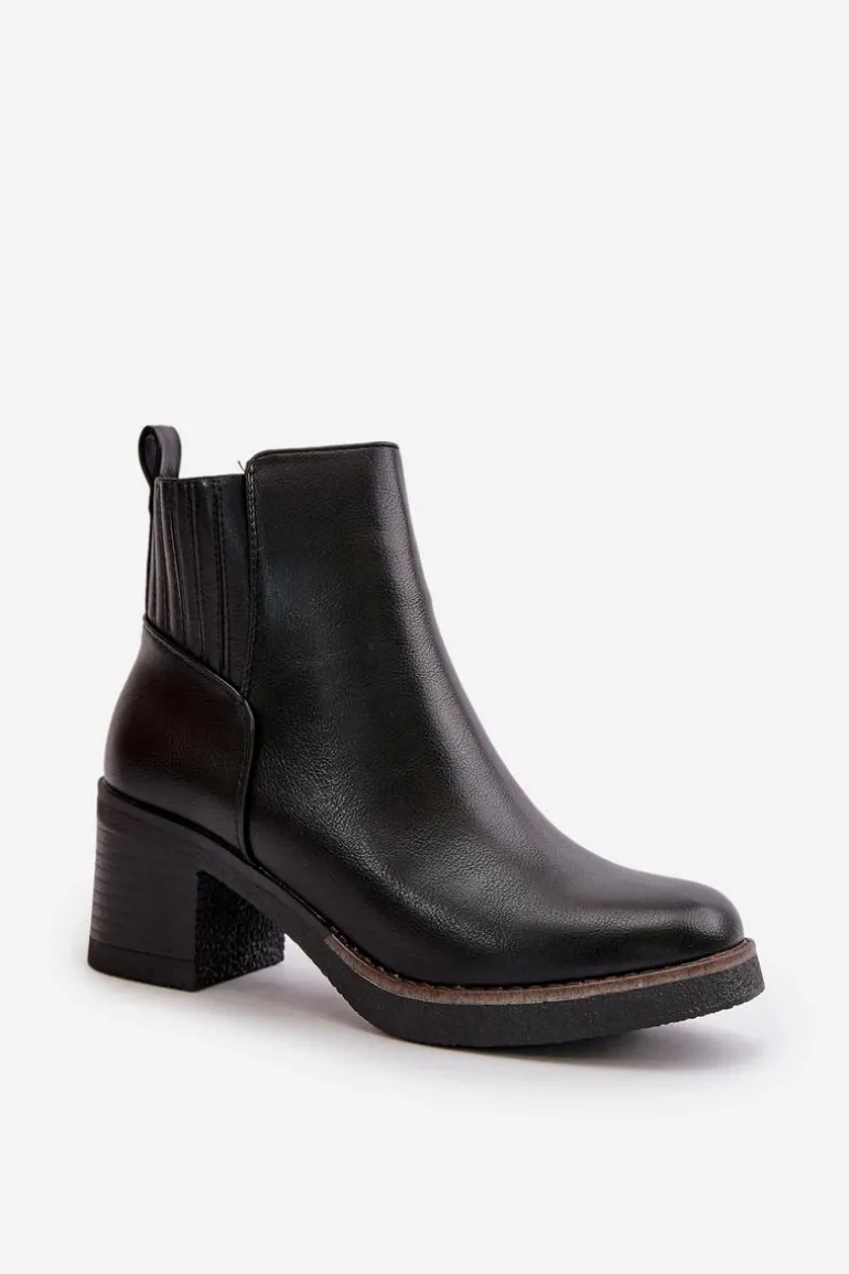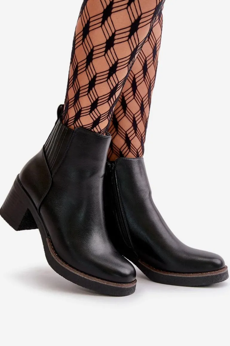 Klasyczne botki damskie wykonane z eko skóry to doskonały wybór na chłodniejsze dni. Wewnątrz ocieplone kocem obuwniczym, zapewniają ciepło i komfort nawet w niskich temperaturach. Osadzone na stabilnym obcasie słupku, łączą elegancję z wygodą noszenia. Praktyczne zapięcie na zamek ułatwia szybkie i wygodne zakładanie. Te botki to idealne uzupełnienie zarówno codziennych, jak i bardziej formalnych stylizacji. Przy wyborze rozmiaru prosimy sugerować się tabelą rozmiarów.