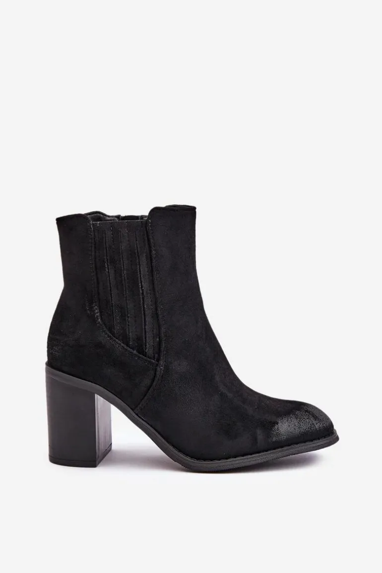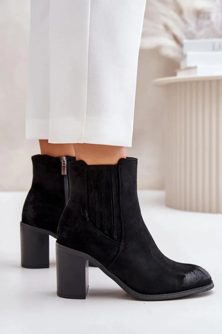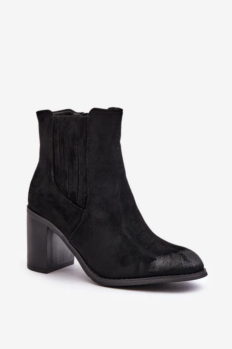 Botki wykonane z miłego w dotyku eko zamszu. Osadzone na obcasie w formie słupka. Wnętrze ocieplane kocem obuwniczym. Idealne do wielu stylizacji np.: do sukienek, spódnic czy spodni. Te botki koniecznie powinny znaleźć się w Twojej jesienno-zimowej garderobie! Przy wyborze rozmiaru prosimy sugerować się tabelą rozmiarów.