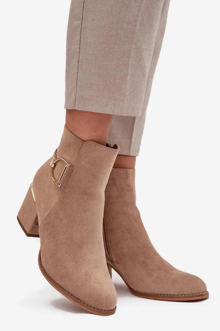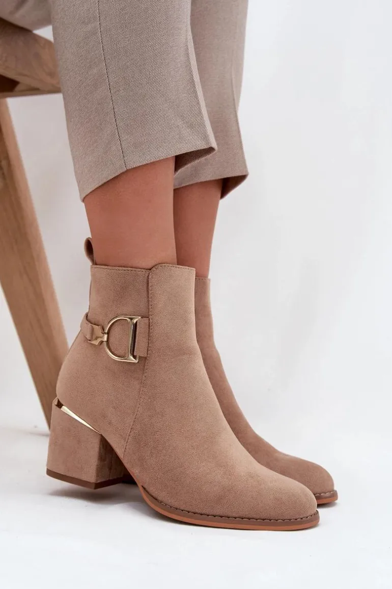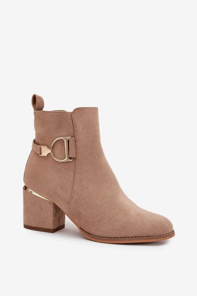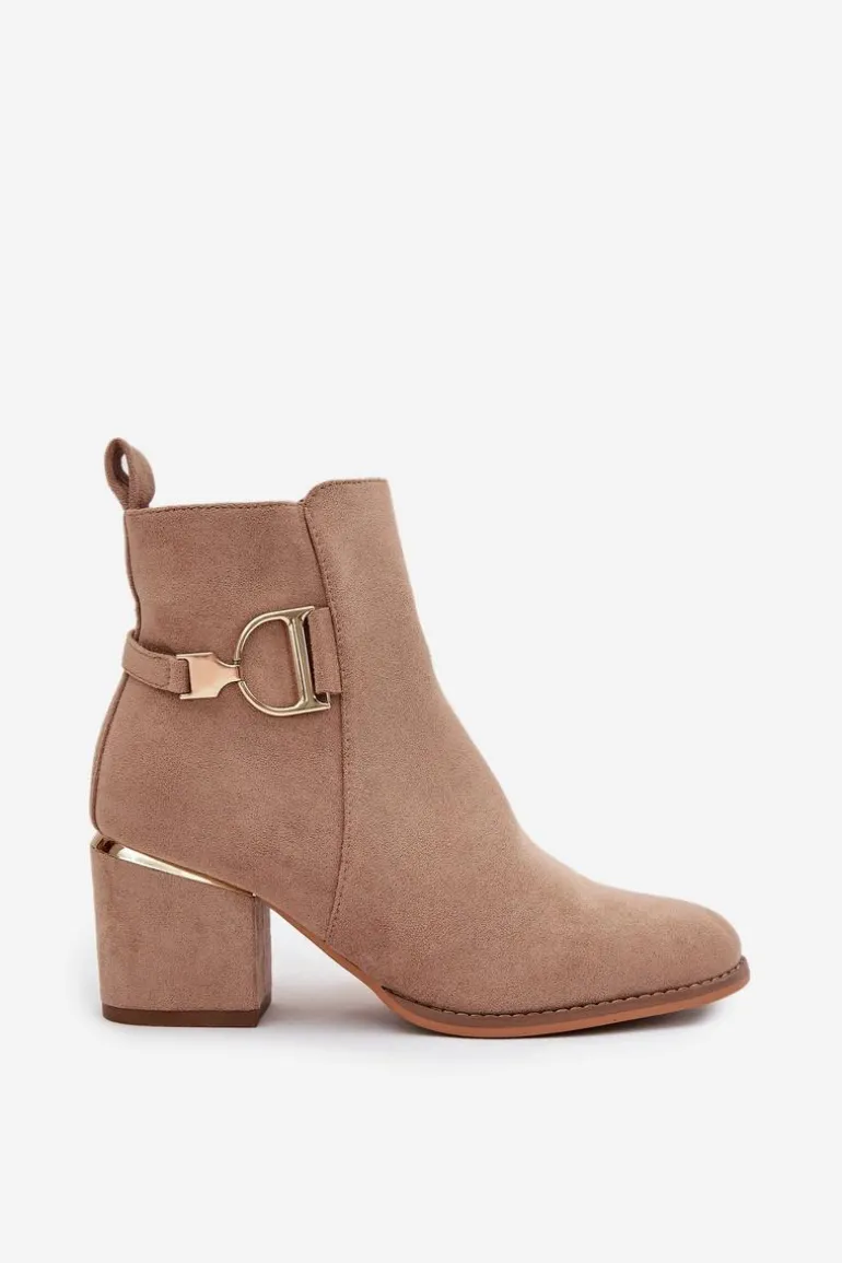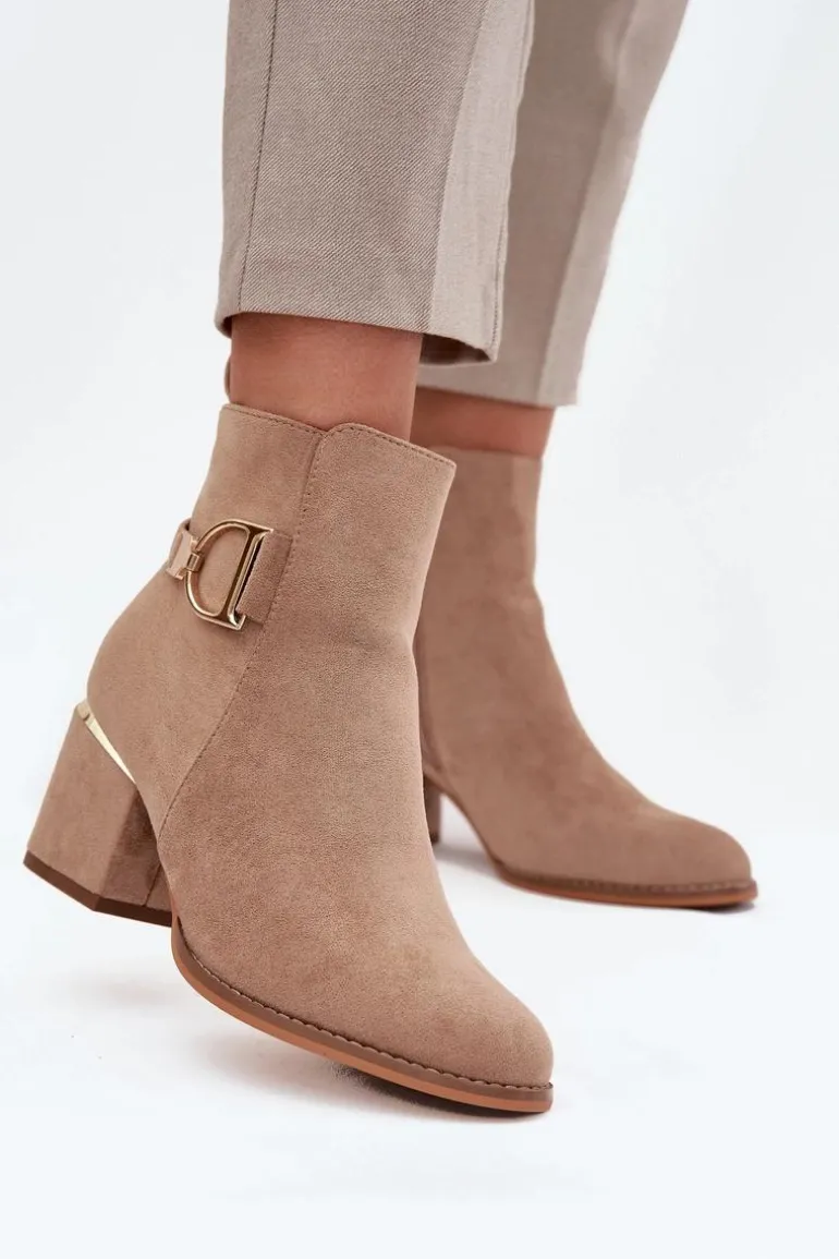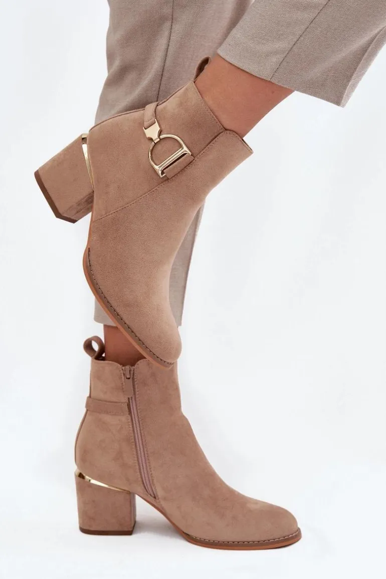 Ocieplane Botki Damskie Na Słupku Ze Złotymi Elementami Beżowe Ambrine
