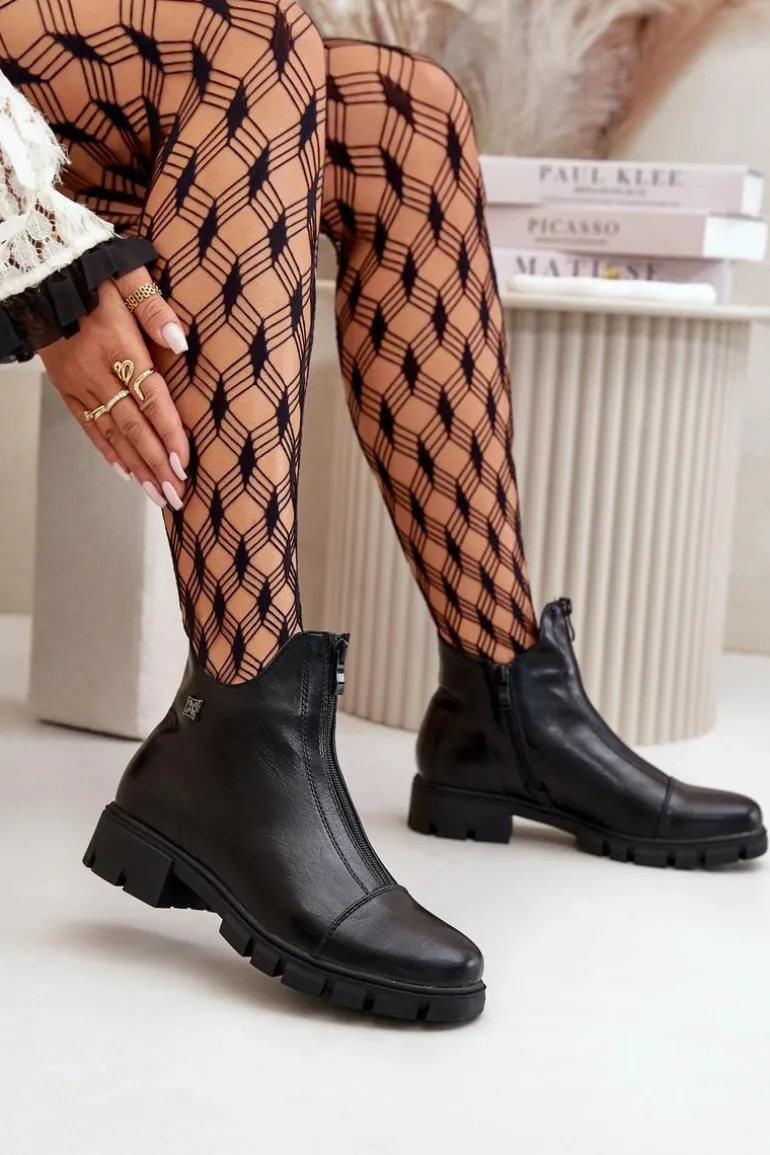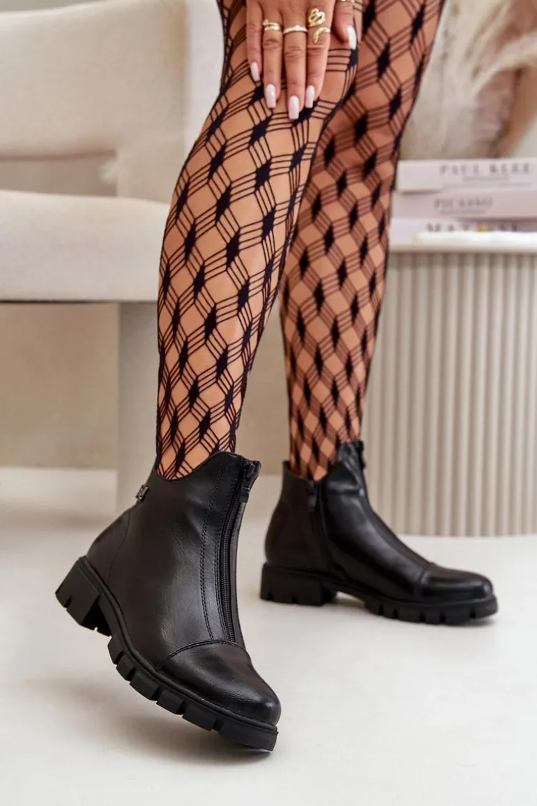Botki marki Jezzi to idealny wybór dla tych, którzy cenią sobie zarówno styl, jak i wygodę. Wykonane z eko skóry. Płaski obcas zapewnia stabilność na każdym kroku. Wnętrze ocieplone kocem obuwniczym gwarantuje ciepło w chłodniejsze dni. Idealne do codziennych stylizacji, te botki łączą funkcjonalność z modnym wyglądem. Przy wyborze rozmiaru prosimy sugerować się tabelą rozmiarów.