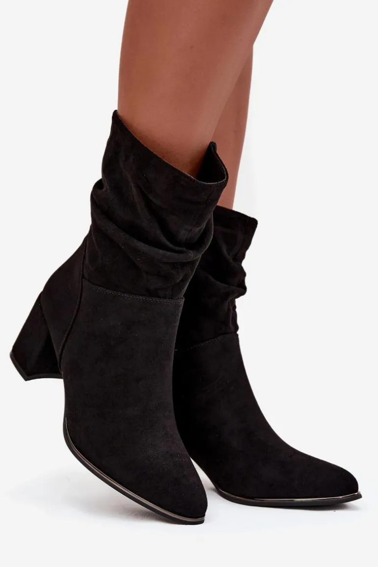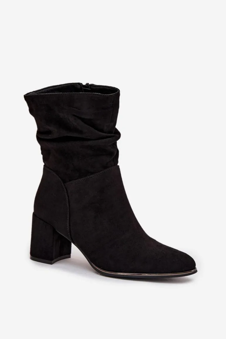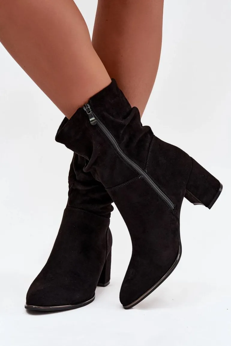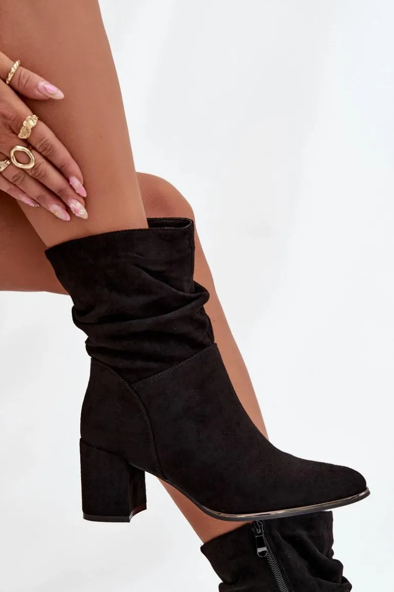 Botki damskie z eko zamszu to stylowa propozycja na chłodniejsze dni. Osadzone na stabilnym obcasie typu słupek subtelnie wysmuklają sylwetkę, a zamek po boku ułatwia zakładanie i zdejmowanie. Modnego charakteru dodaje im marszczona cholewka, która przyciąga uwagę. Wnętrze butów zostało ocieplone kocem obuwniczym, dzięki czemu zapewniają komfort i ciepło w jesienne oraz zimowe dni. To uniwersalny model, który świetnie sprawdzi się zarówno w codziennych, jak i bardziej eleganckich stylizacjach.