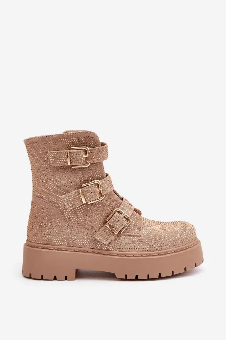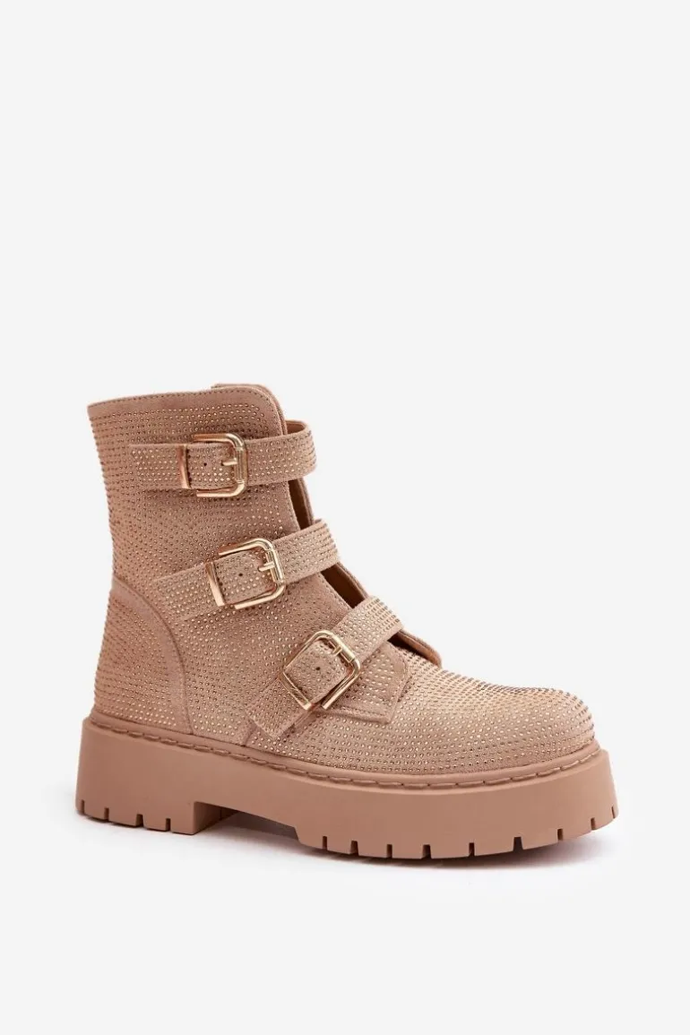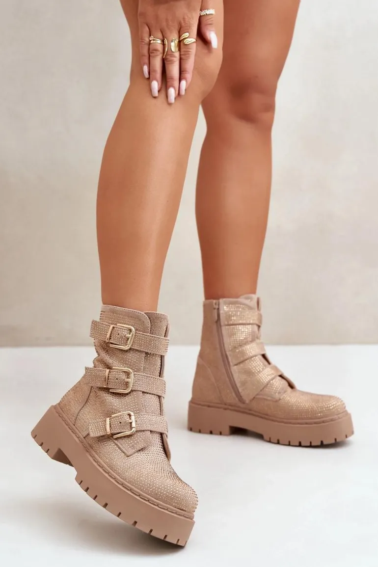 Stylowe damskie botki to niezbędny element jesienno-zimowej garderoby. Model ten wyróżnia się zdobioną cholewką oraz regulowanym paskami z klamrami. Zapinane na zamek, co ułatwi zakładanie i zdejmowanie obuwia. Środek ocieplony kocem obuwniczym. Doskonale sprawdzą się w różnych stylizacjach! Przy wyborze rozmiaru prosimy sugerować się tabelą rozmiarów.