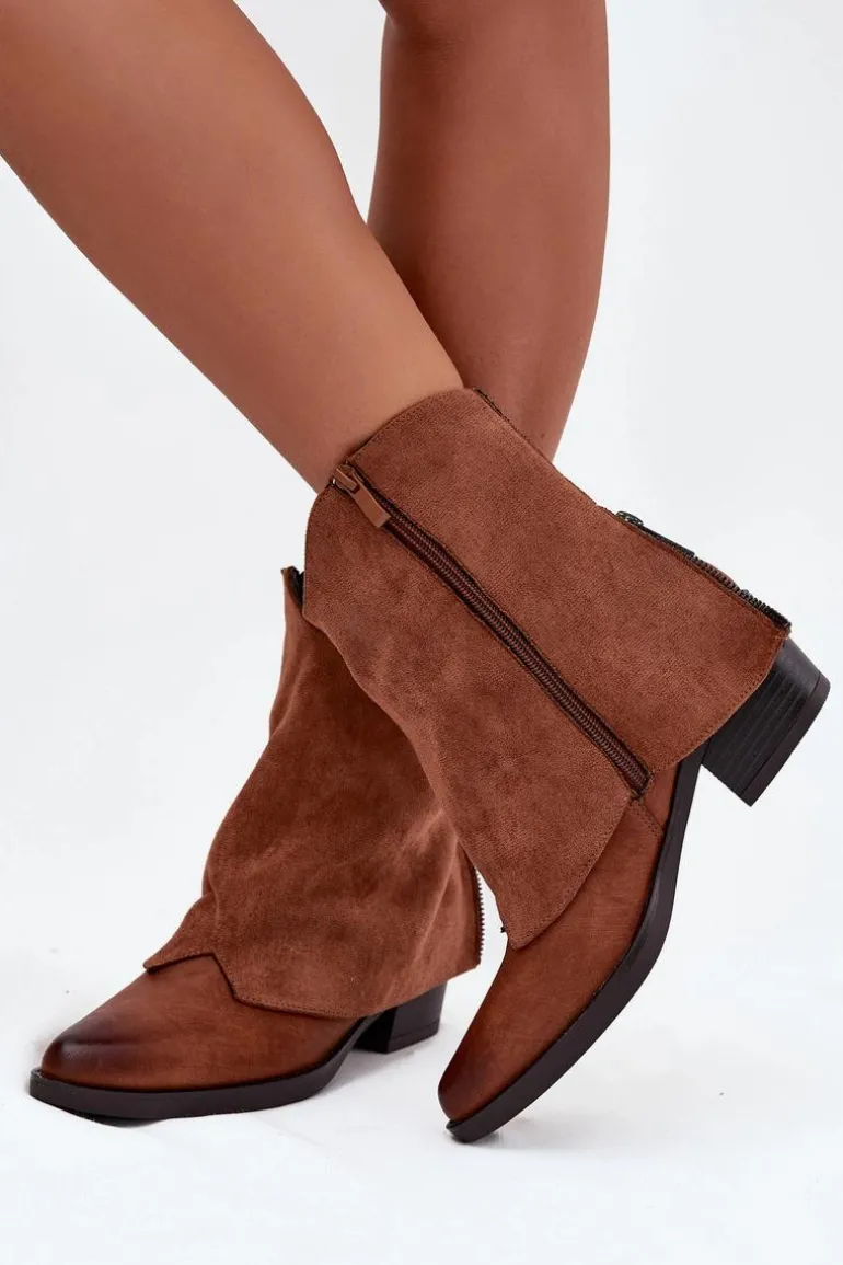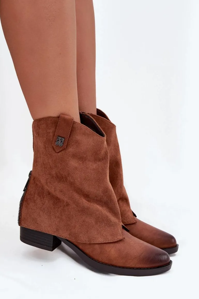 Ocieplane Botki Kowbojki Na Obcasie Camel Sylvette