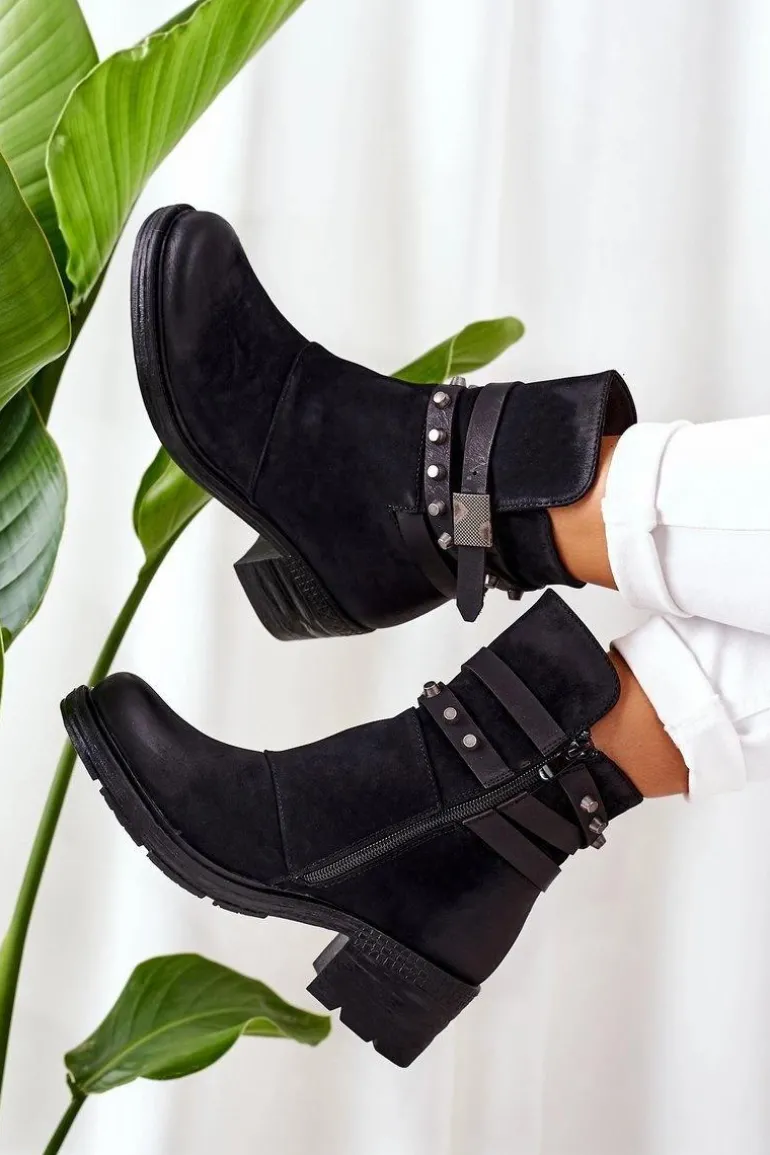 Botki zostały wykonane z matowej skóry ekologicznej. Wnętrze pokryte ciepłym i miłym w dotyku kocem obuwniczym. Przy wyborze rozmiaru prosimy sugerować się tabelą rozmiarów.