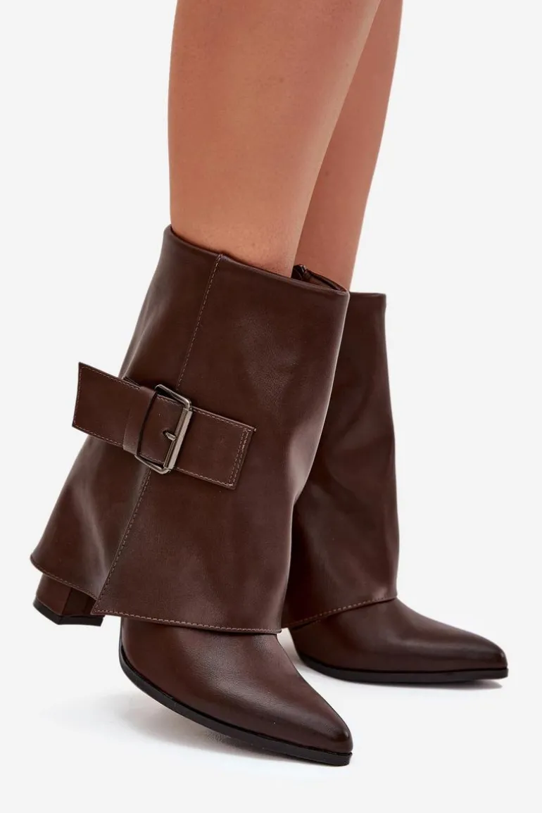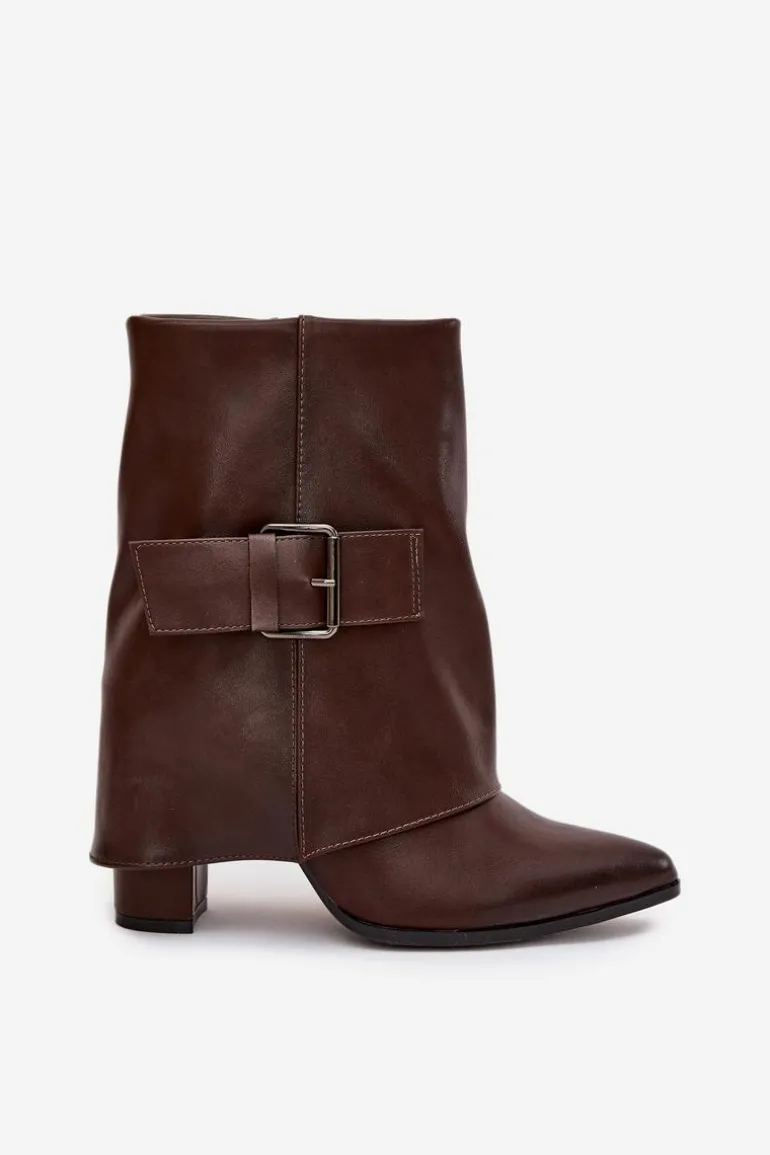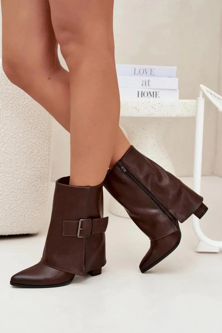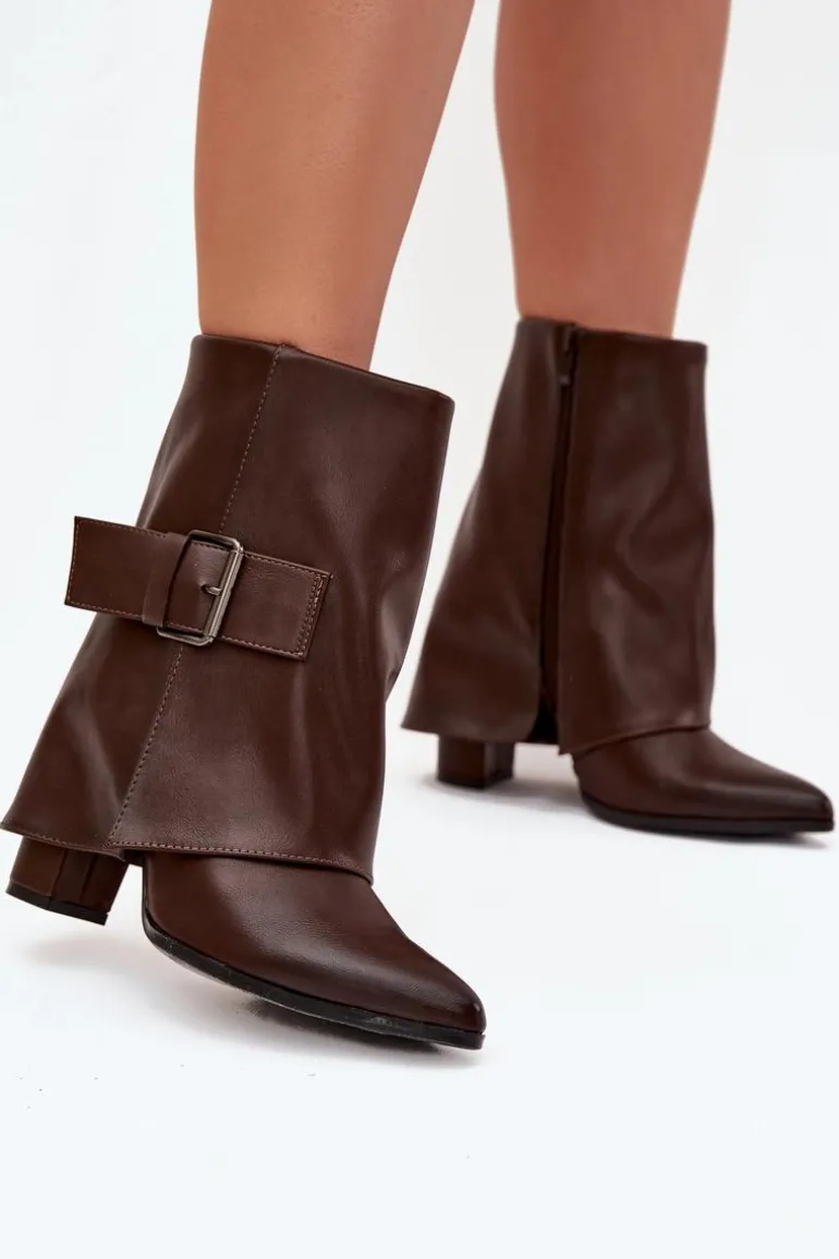 Modne botki z wywiniętą cholewką to doskonały wybór na sezon jesienno-zimowy. Osadzone na obcasie typu słupek, z noskami w szpic, optycznie wydłużają nogi, dodając sylwetce lekkości. Wykonane z eko skóry. Ocieplane kocem obuwniczym, gwarantują ciepło w chłodne dni. Duża klamra na cholewce stanowi subtelny, ale efektowny detal, który nadaje butom wyjątkowego charakteru. Zapinane na zamek. Idealne na każdą okazję, te botki będą eleganckim akcentem w Twoich stylizacjach. Przy wyborze rozmiaru prosimy sugerować się tabelą rozmiarów.