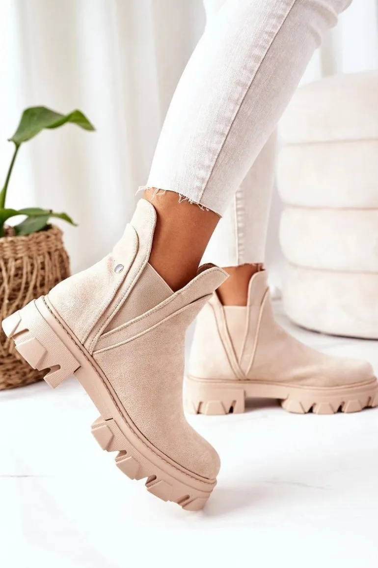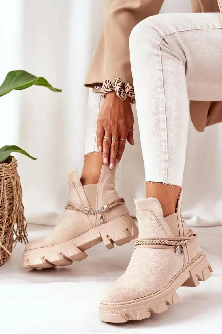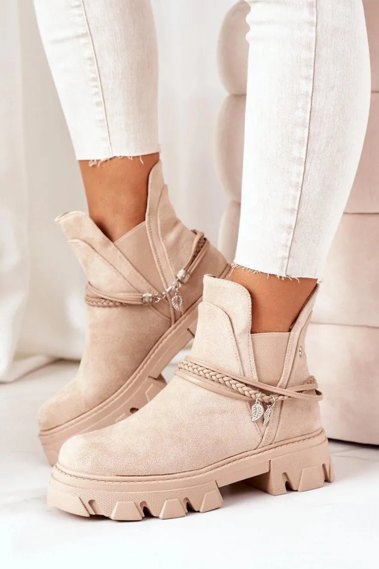 Sztyblety damskie wykonane z eko zamszu. Wnętrze botków ocieplone jest miłym w dotyku kocem obuwniczym. Dekoracyjne paski są odpinane. Przy wyborze rozmiaru prosimy sugerować się tabelą rozmiarów.