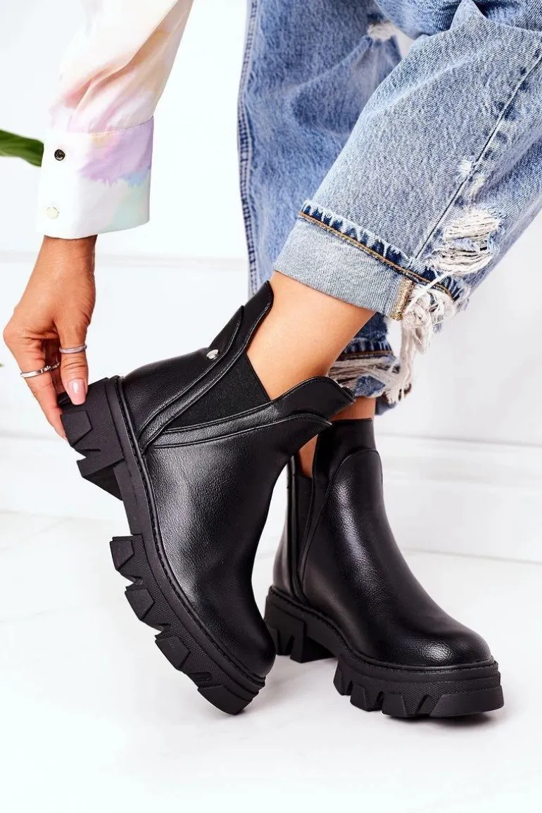Sztyblety damskie wykonane z eko skóry. Wnętrze botków ocieplone jest miłym w dotyku kocem obuwniczym. Przy wyborze rozmiaru prosimy sugerować się tabelą rozmiarów.
