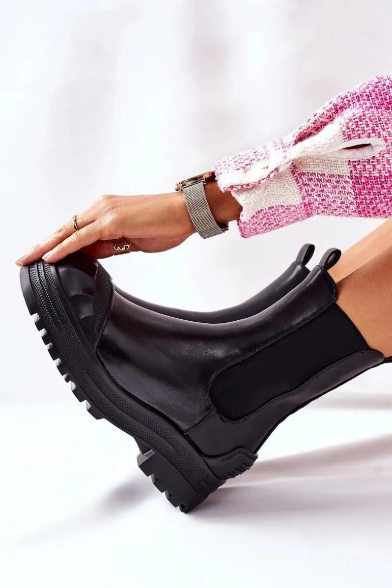 Sztyblety damskie wykonane z eko skóry. Wnętrze botków ocieplone jest miłym w dotyku kocem obuwniczym. Przy wyborze rozmiaru prosimy sugerować się tabelą rozmiarów.