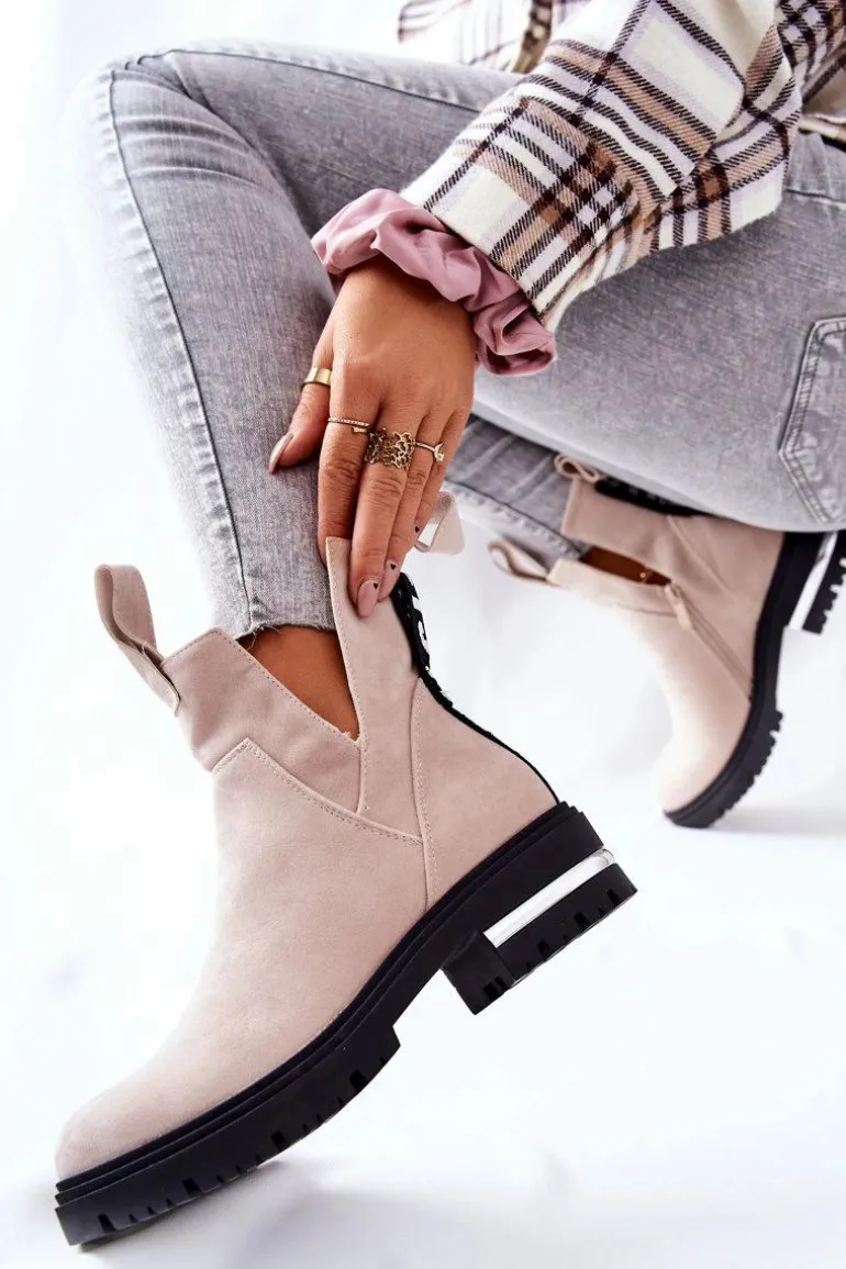Ocieplane Botki Sztyblety Z Suwakiem Beżowe My Way