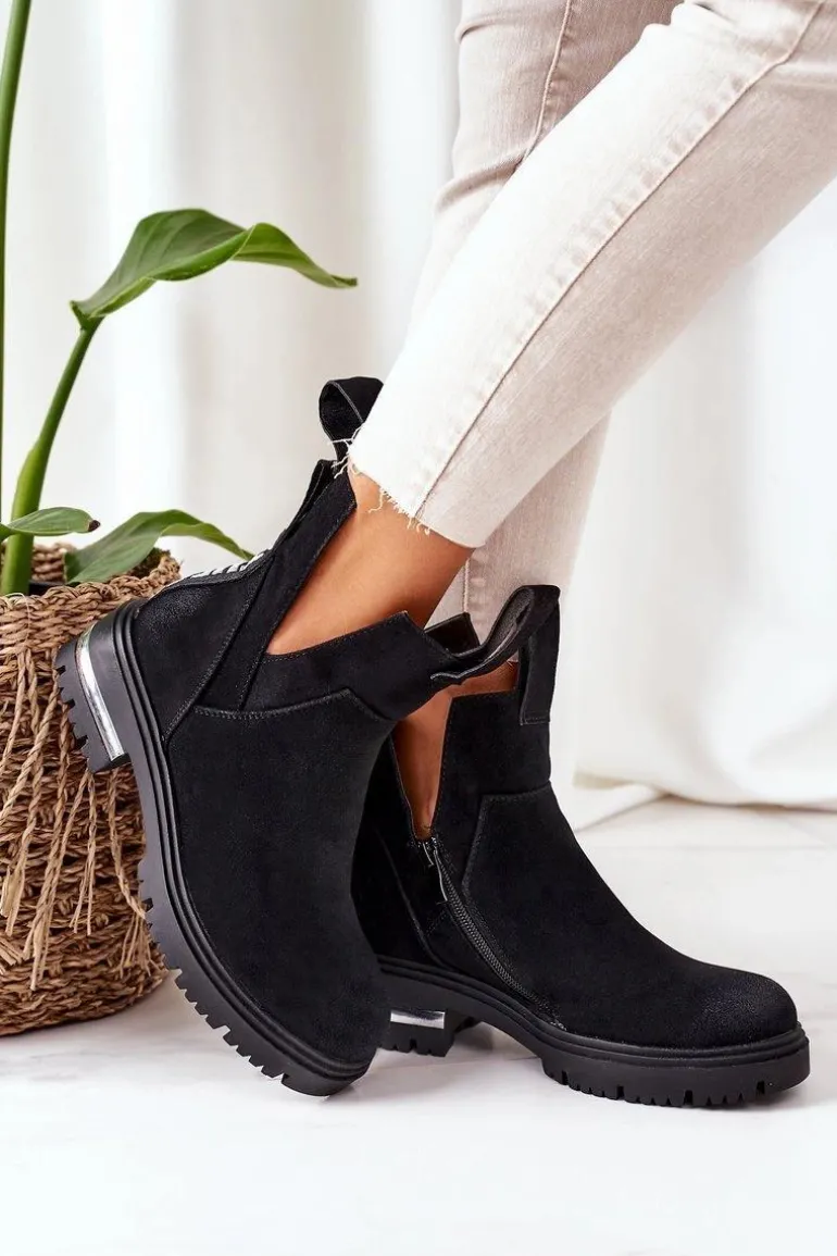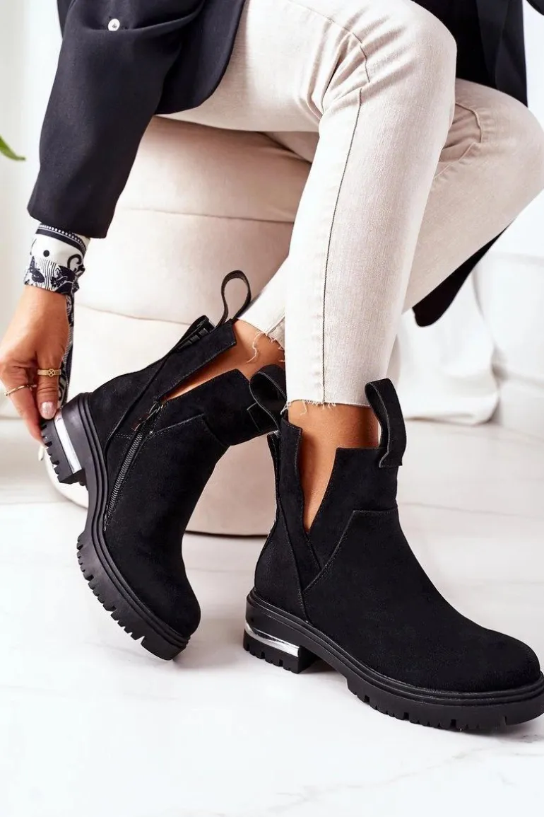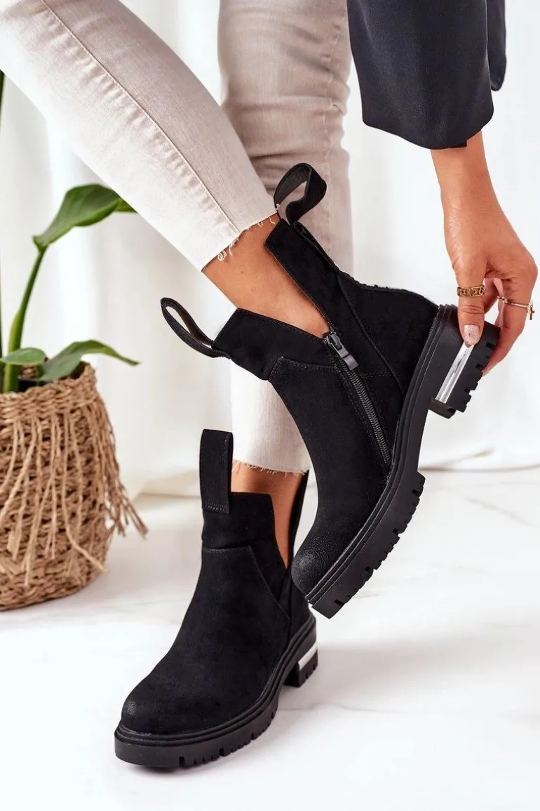 Sztyblety damskie wykonane z eko zamszu. Wnętrze botków ocieplone jest miłym w dotyku kocem obuwniczym. Przy wyborze rozmiaru prosimy sugerować się tabelą rozmiarów.