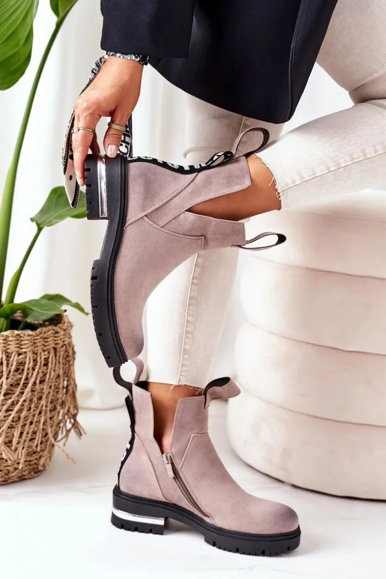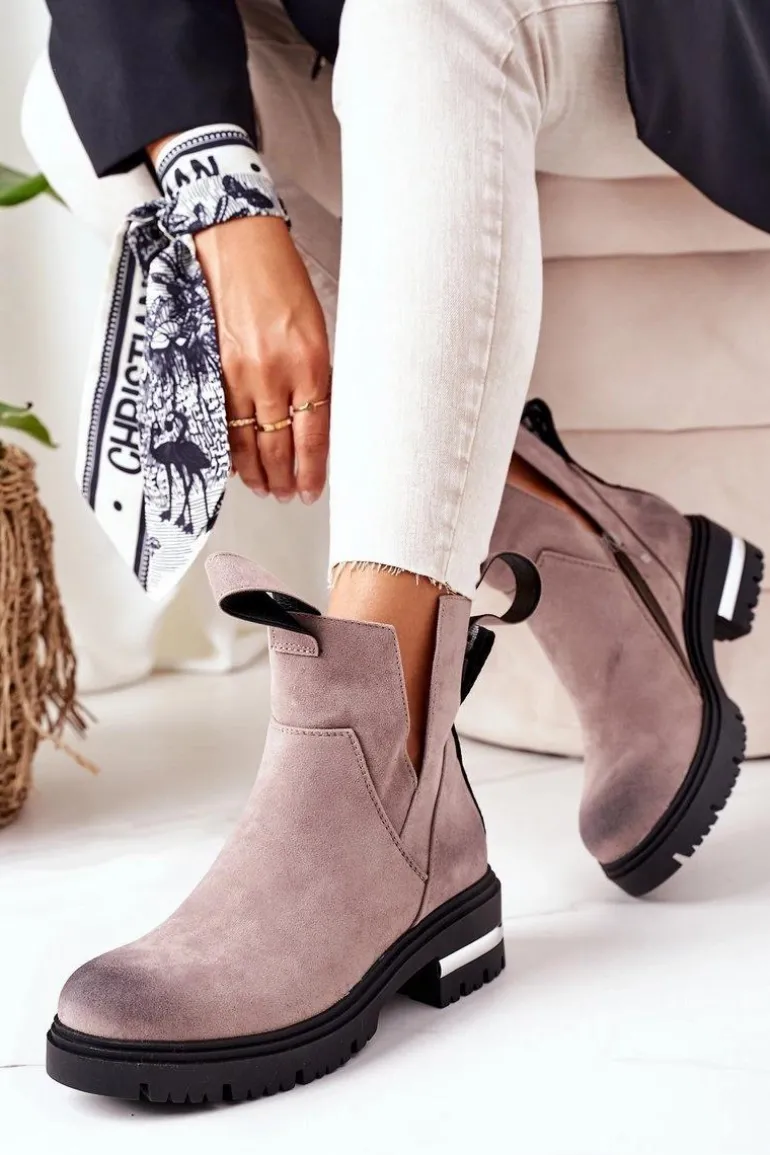 Sztyblety damskie wykonane z eko zamszu. Wnętrze botków ocieplone jest miłym w dotyku kocem obuwniczym. Przy wyborze rozmiaru prosimy sugerować się tabelą rozmiarów.