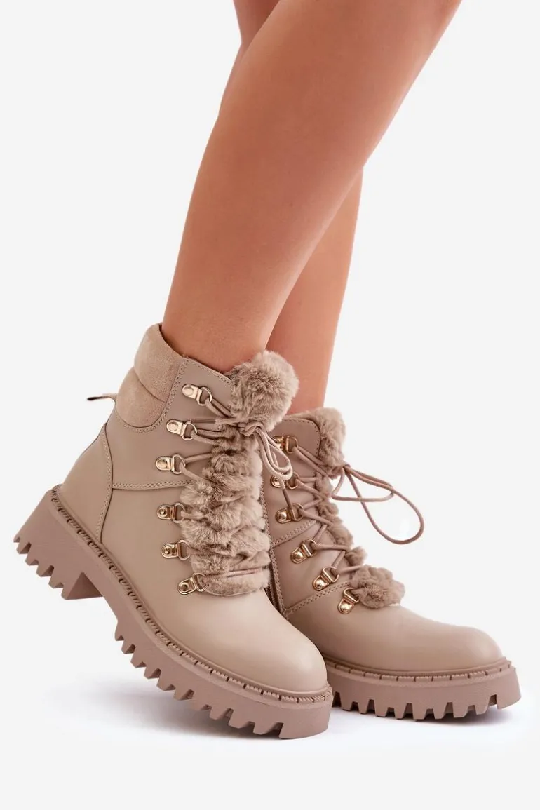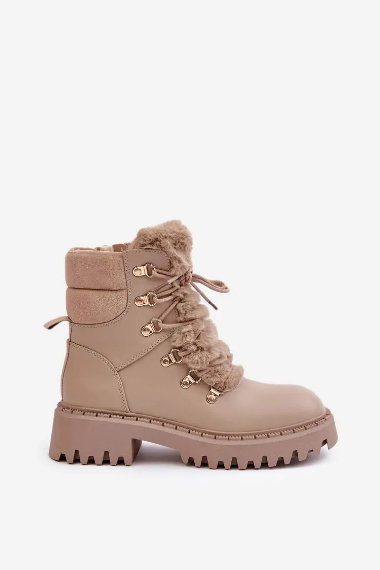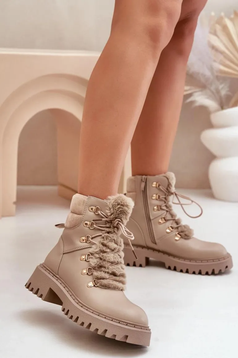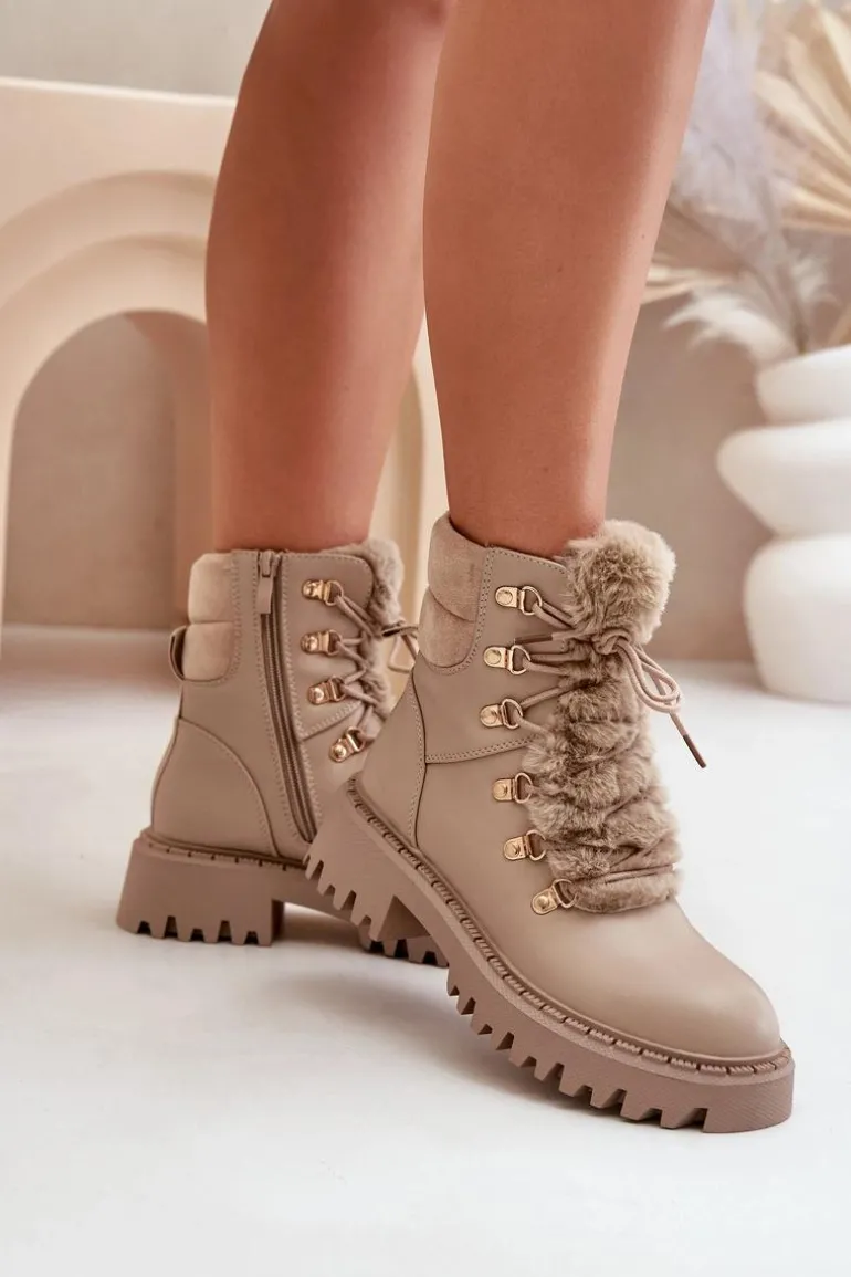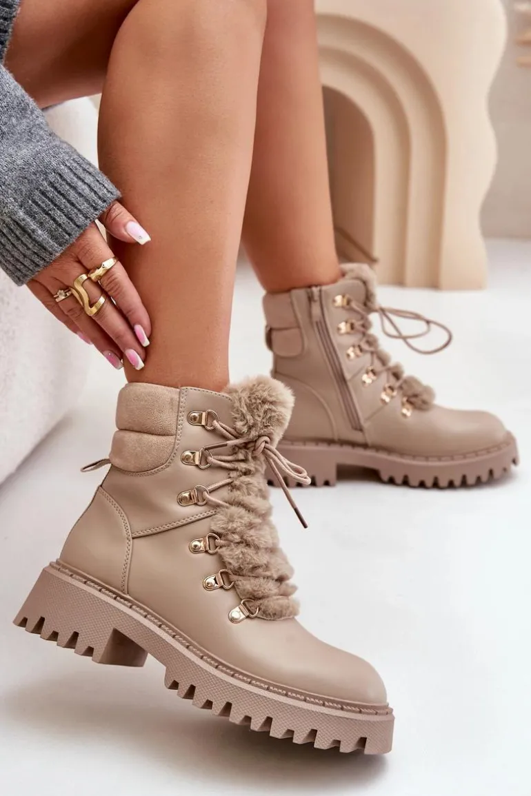 Damskie trapery wykonane z eko skóry to doskonały wybór na chłodniejsze dni. Model sznurowany oraz zapinany na zamek, co ułatwia szybkie zakładanie i zapewnia idealne dopasowanie. Język buta ozdobiony jest miękkim futerkiem, które dodaje uroku oraz chroni przed zimnem. Wnętrze ocieplane gwarantuje ciepło i wygodę podczas noszenia, dzięki czemu trapery świetnie sprawdzą się zarówno na co dzień, jak i w bardziej wymagających warunkach pogodowych. Przy wyborze rozmiaru prosimy sugerować się tabelą rozmiarów.