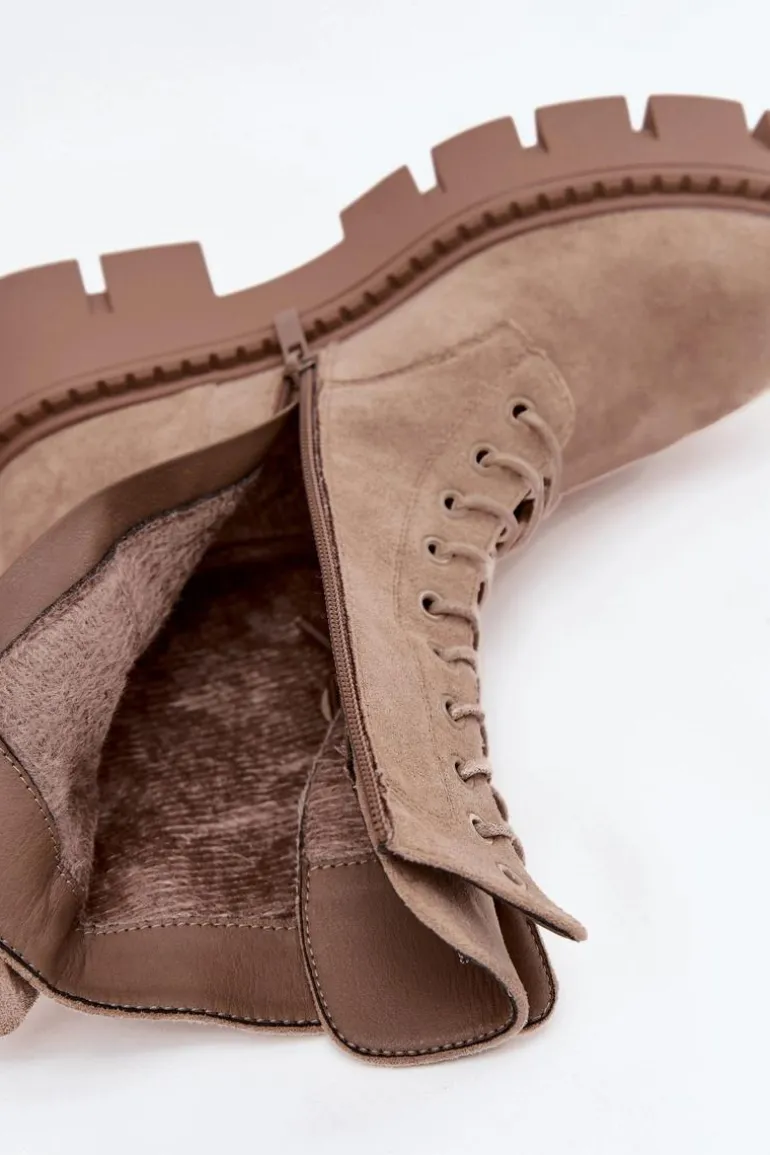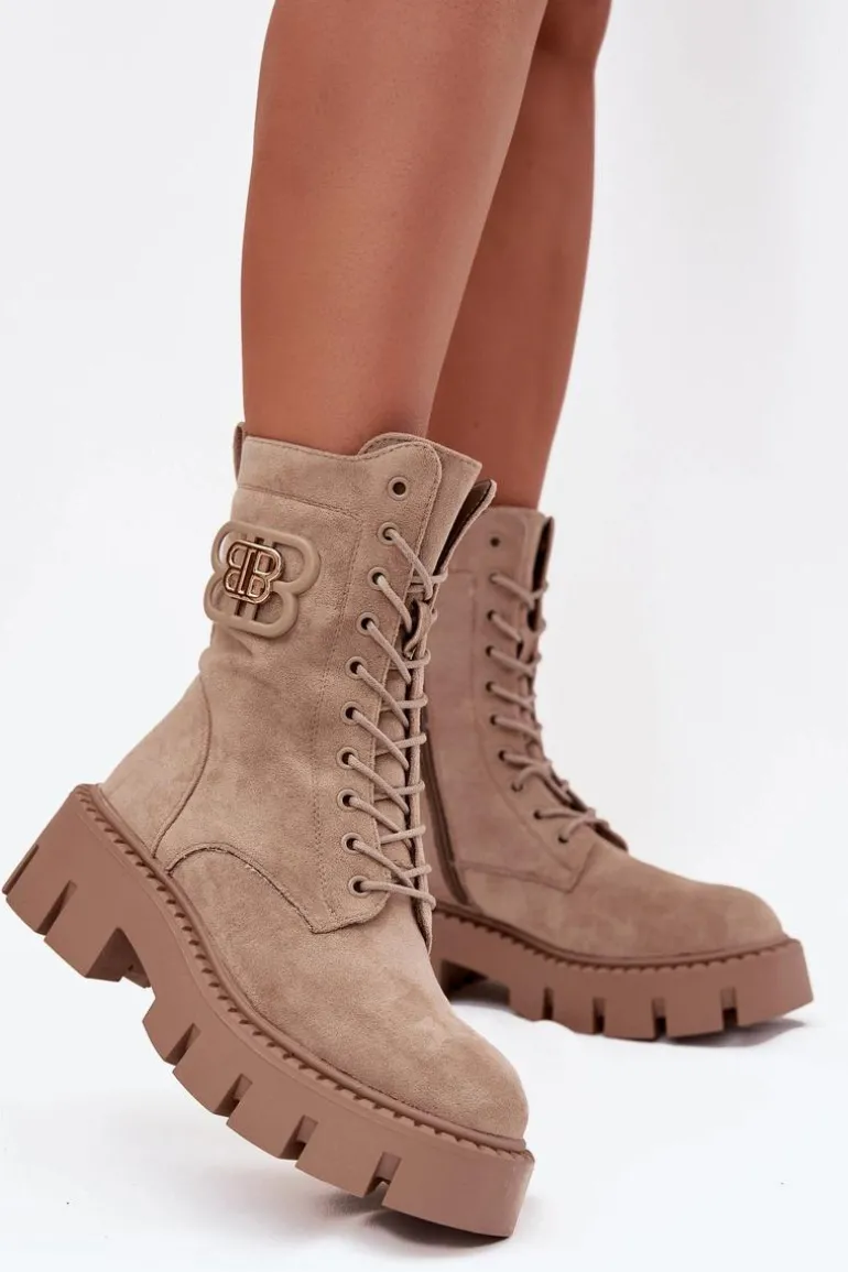 Botki workery damskie to połączenie miejskiego stylu i wygody. Model ocieplony miękkim kocem obuwniczym zapewnia ciepło w chłodniejsze dni, a połączenie sznurowania z zamkiem umożliwia idealne dopasowanie do stopy i łatwe zakładanie. Masywny obcas i platforma gwarantują stabilny krok, a subtelny ozdobny detal po boku cholewki dodaje charakteru i modowego akcentu, dzięki czemu botki świetnie sprawdzą się w codziennych stylizacjach. Przy wyborze rozmiaru prosimy sugerować się tabelą rozmiarów.