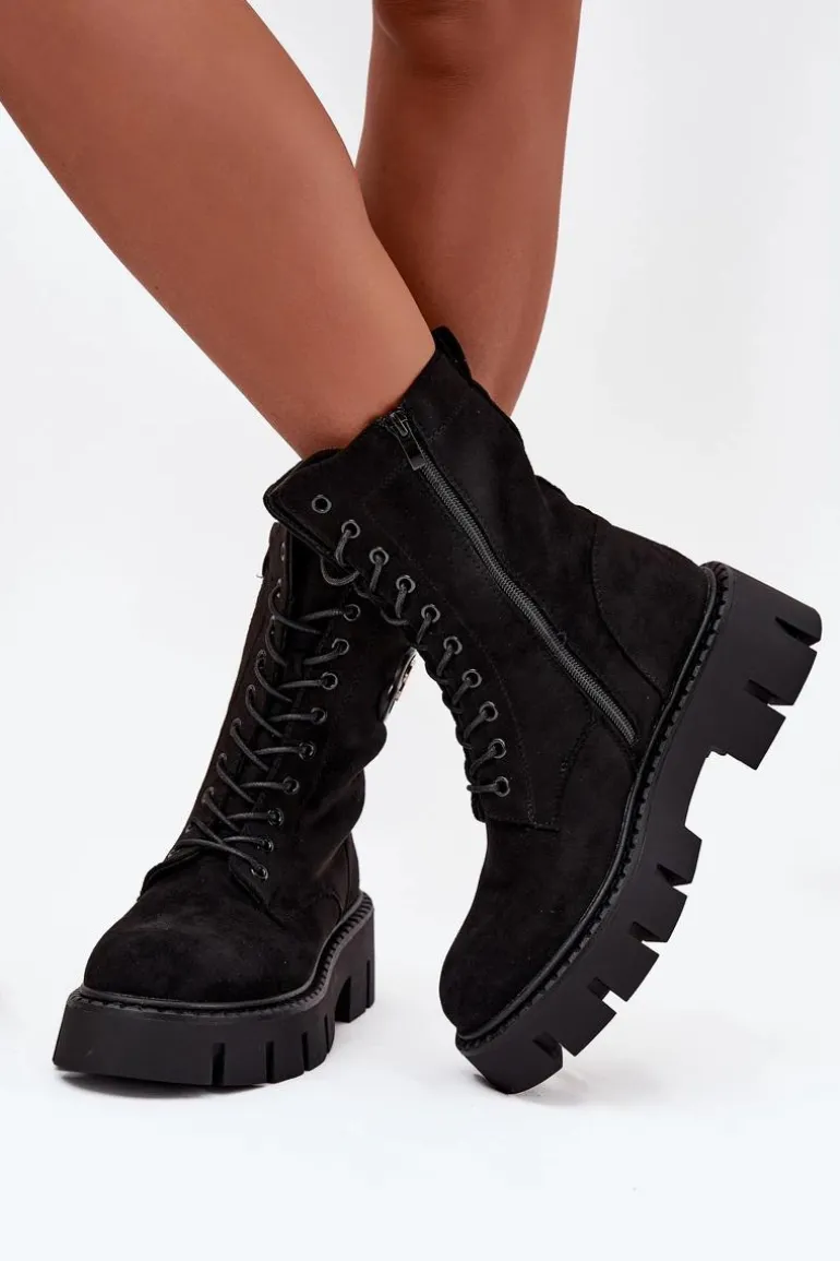 Botki workery damskie to połączenie miejskiego stylu i wygody. Model ocieplony miękkim kocem obuwniczym zapewnia ciepło w chłodniejsze dni, a połączenie sznurowania z zamkiem umożliwia idealne dopasowanie do stopy i łatwe zakładanie. Masywny obcas i platforma gwarantują stabilny krok, a subtelny ozdobny detal po boku cholewki dodaje charakteru i modowego akcentu, dzięki czemu botki świetnie sprawdzą się w codziennych stylizacjach. Przy wyborze rozmiaru prosimy sugerować się tabelą rozmiarów.
