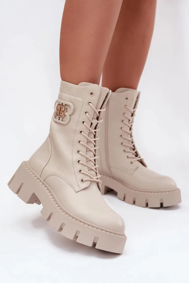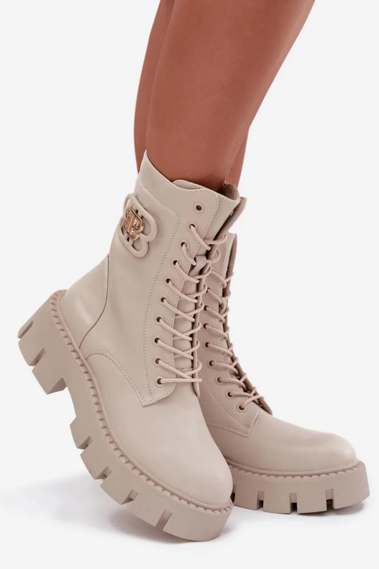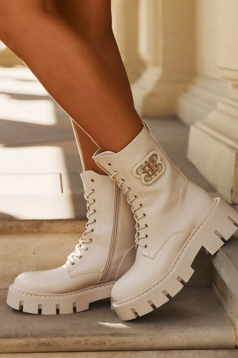 Botki workery damskie to połączenie miejskiego stylu i wygody. Model ocieplony miękkim kocem obuwniczym zapewnia ciepło w chłodniejsze dni, a połączenie sznurowania z zamkiem umożliwia idealne dopasowanie do stopy i łatwe zakładanie. Masywny obcas i platforma gwarantują stabilny krok, a subtelny ozdobny detal po boku cholewki dodaje charakteru i modowego akcentu, dzięki czemu botki świetnie sprawdzą się w codziennych stylizacjach. Przy wyborze rozmiaru prosimy sugerować się tabelą rozmiarów.