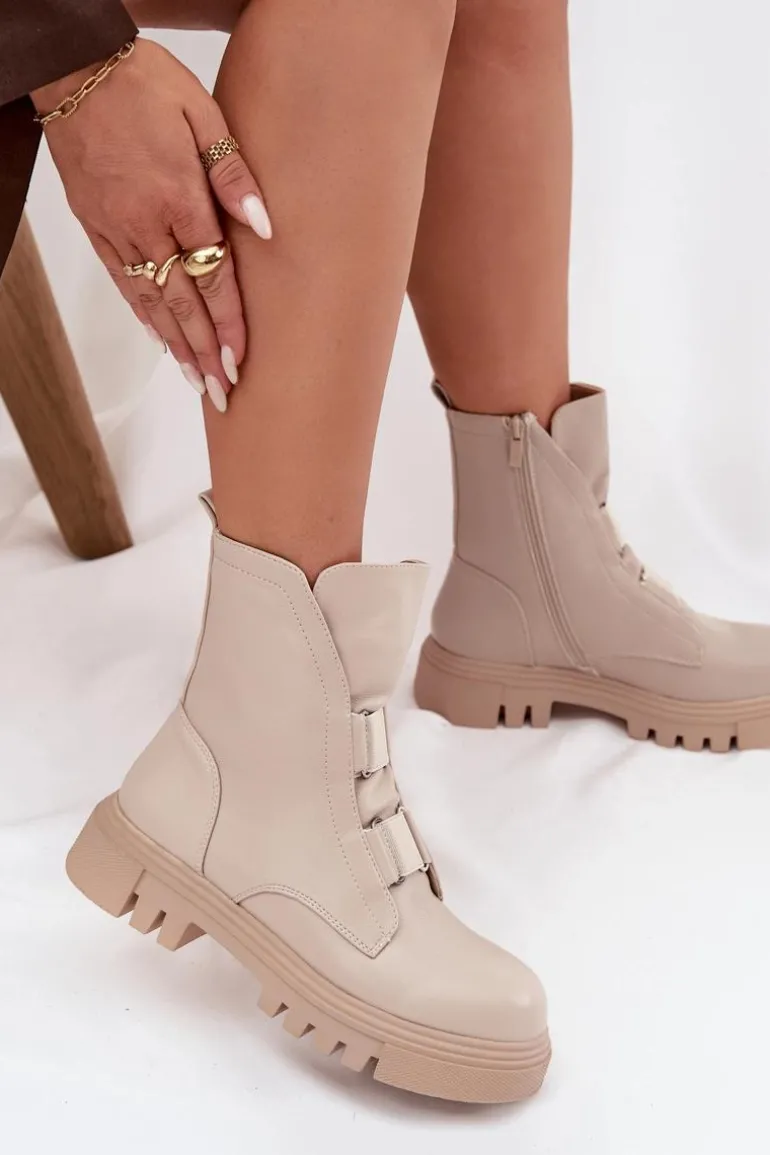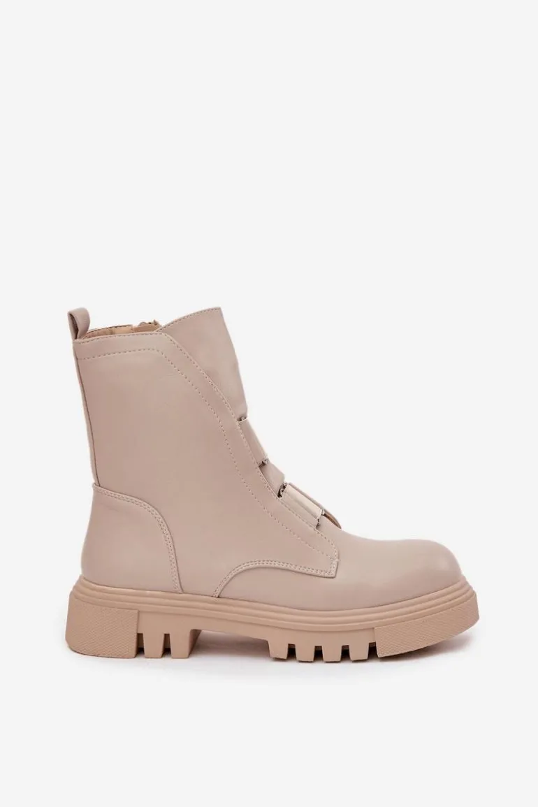 Damskie botki od marki Jezzi zostały wykonane z eko skóry. Zapinane na zamek, co ułatwia zakładanie i ściąganie obuwia. Wnętrze ocieplone kocem obuwniczym, który zapewni ciepło w mroźne dni. Noski zaokrąglone. Modny fason, który doskonale uzupełni wiele jesienno-zimowych stylizacji! Przy wyborze rozmiaru prosimy sugerować się tabelą rozmiarów.
