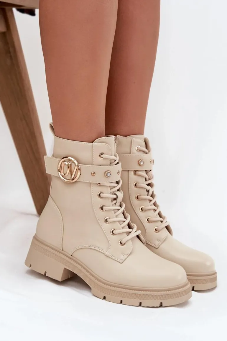 Botki workery damskie z eko skóry to połączenie wygody i modnego, miejskiego charakteru. Model sznurowany i zapinany na zamek zapewnia idealne dopasowanie oraz łatwe zakładanie. Ocieplenie miękkim kocem obuwniczym gwarantuje ciepło w chłodniejsze dni, a pasek ze złotymi ozdobami dodaje subtelnego, efektownego akcentu, który wyróżnia buty w codziennych stylizacjach. Przy wyborze rozmiaru prosimy sugerować się tabelą rozmiarów.