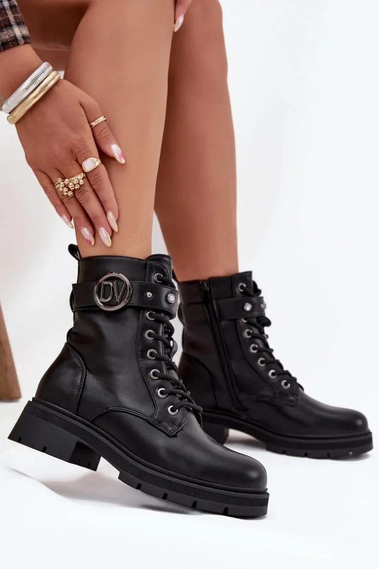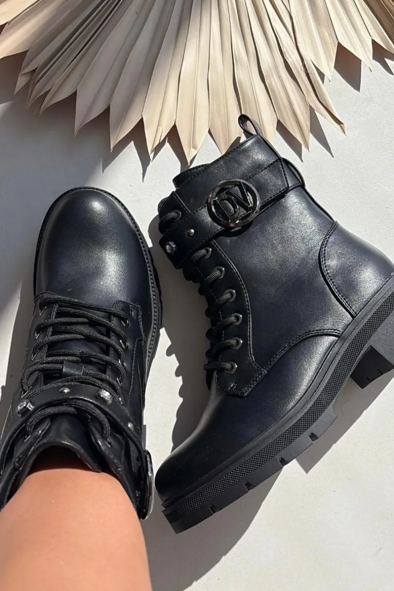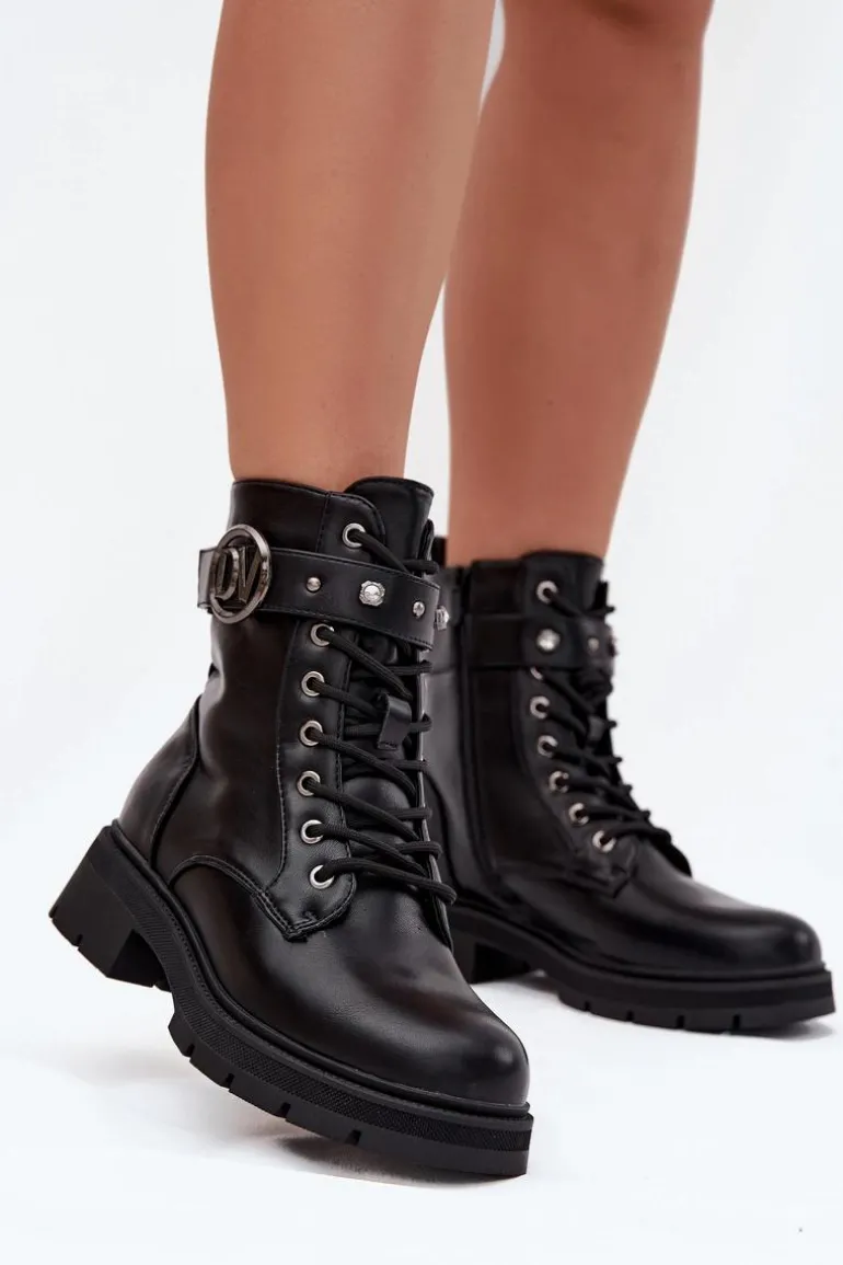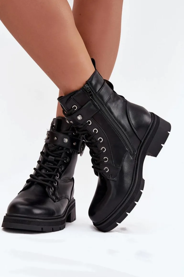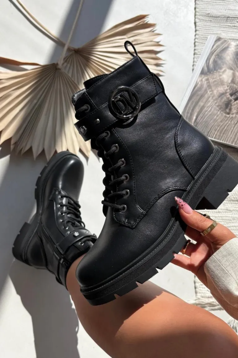 Botki workery damskie z eko skóry to połączenie wygody i modnego, miejskiego charakteru. Model sznurowany i zapinany na zamek zapewnia idealne dopasowanie oraz łatwe zakładanie. Ocieplenie miękkim kocem obuwniczym gwarantuje ciepło w chłodniejsze dni, a pasek z ozdobami dodaje subtelnego, efektownego akcentu, który wyróżnia buty w codziennych stylizacjach. Przy wyborze rozmiaru prosimy sugerować się tabelą rozmiarów.