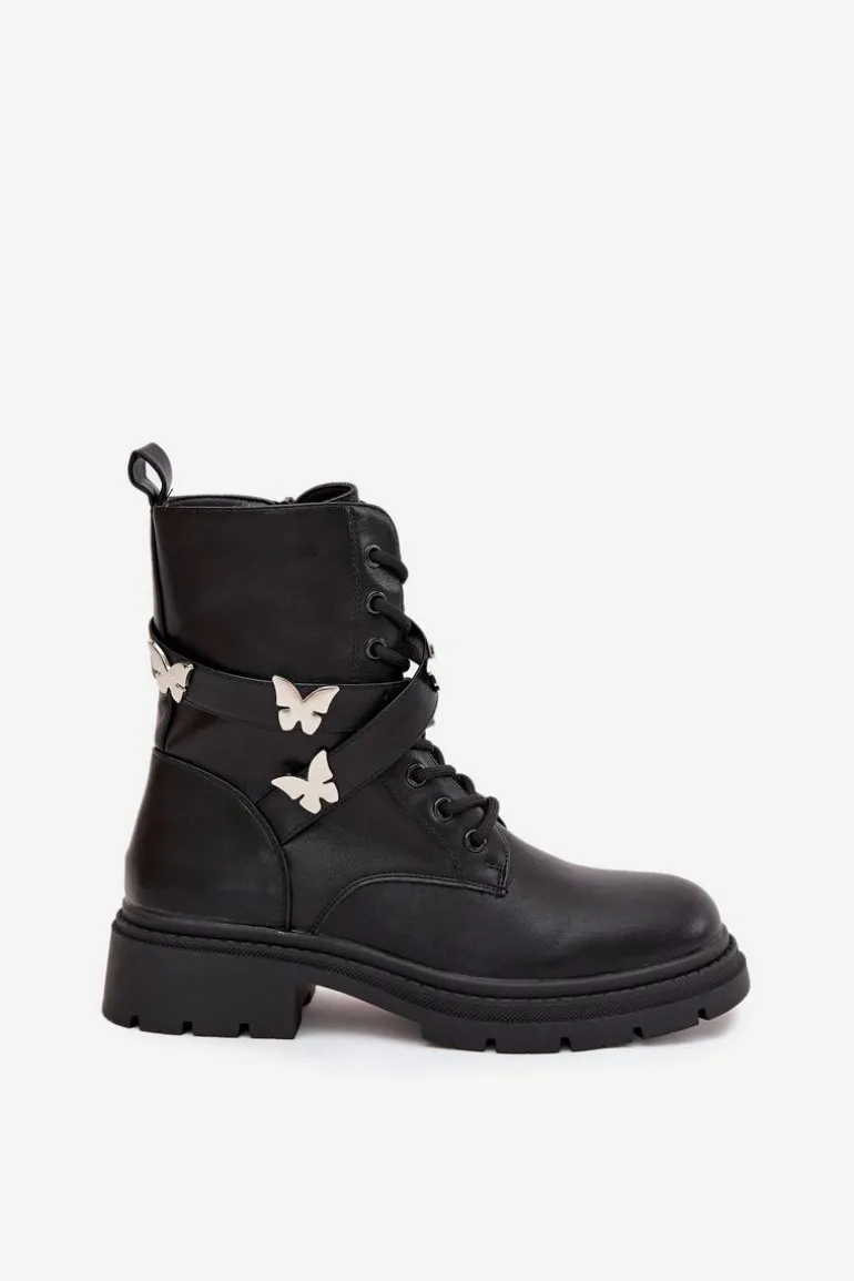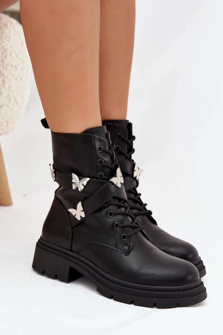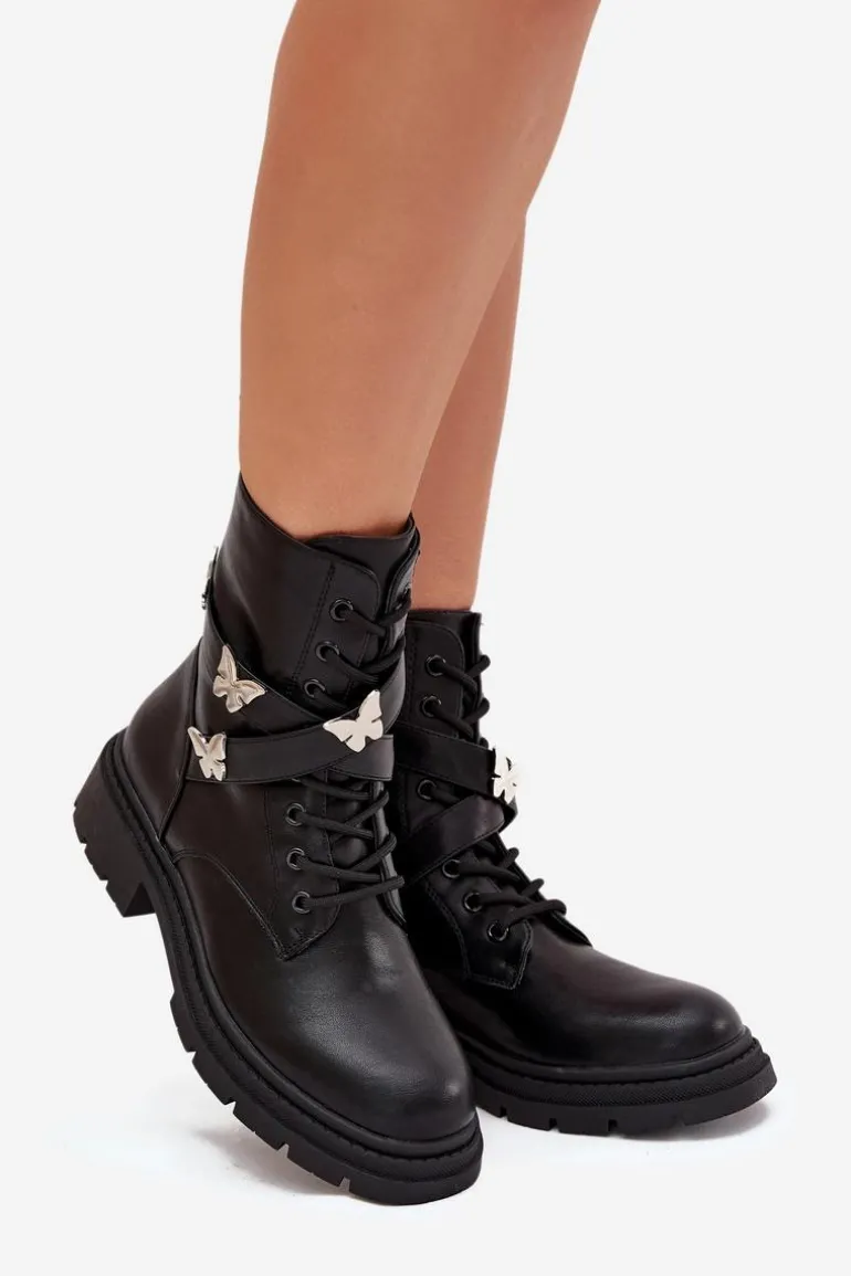 Botki workery damskie wykonane z eko skóry to modny i praktyczny wybór na chłodniejsze dni. Model sznurowany i zapinany na zamek gwarantuje wygodę zakładania oraz dobre dopasowanie do stopy. Wnętrze ocieplone kocem obuwniczym zapewnia komfort i ciepło podczas noszenia. Stylowym akcentem jest pasek ze srebrnymi przypinkami, który nadaje całości nowoczesnego, wyrazistego charakteru. To idealne obuwie na co dzień, świetnie komponujące się z casualowymi stylizacjami. Przy wyborze rozmiaru prosimy sugerować się tabelą rozmiarów.