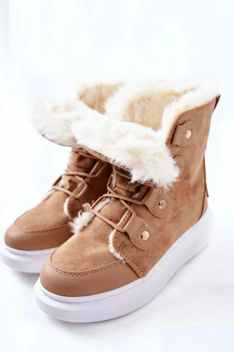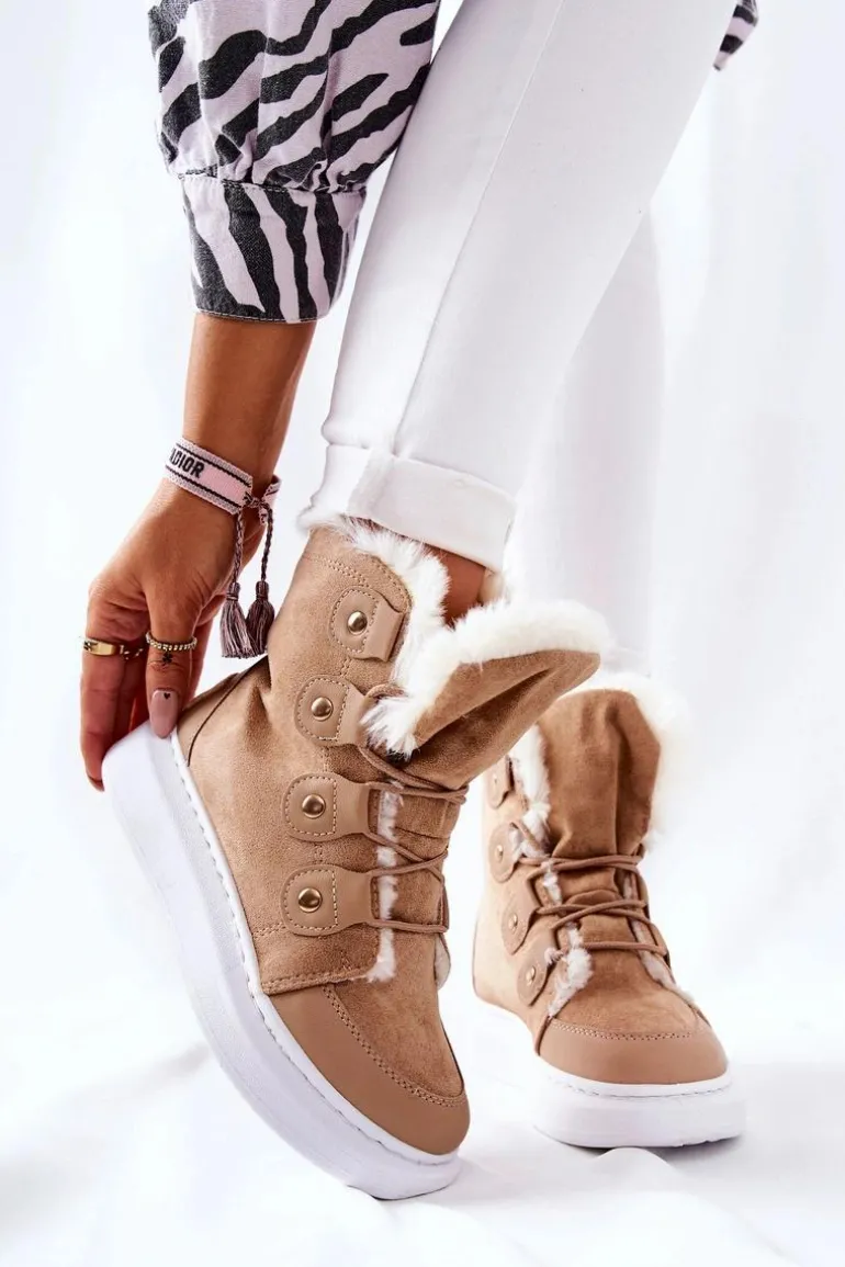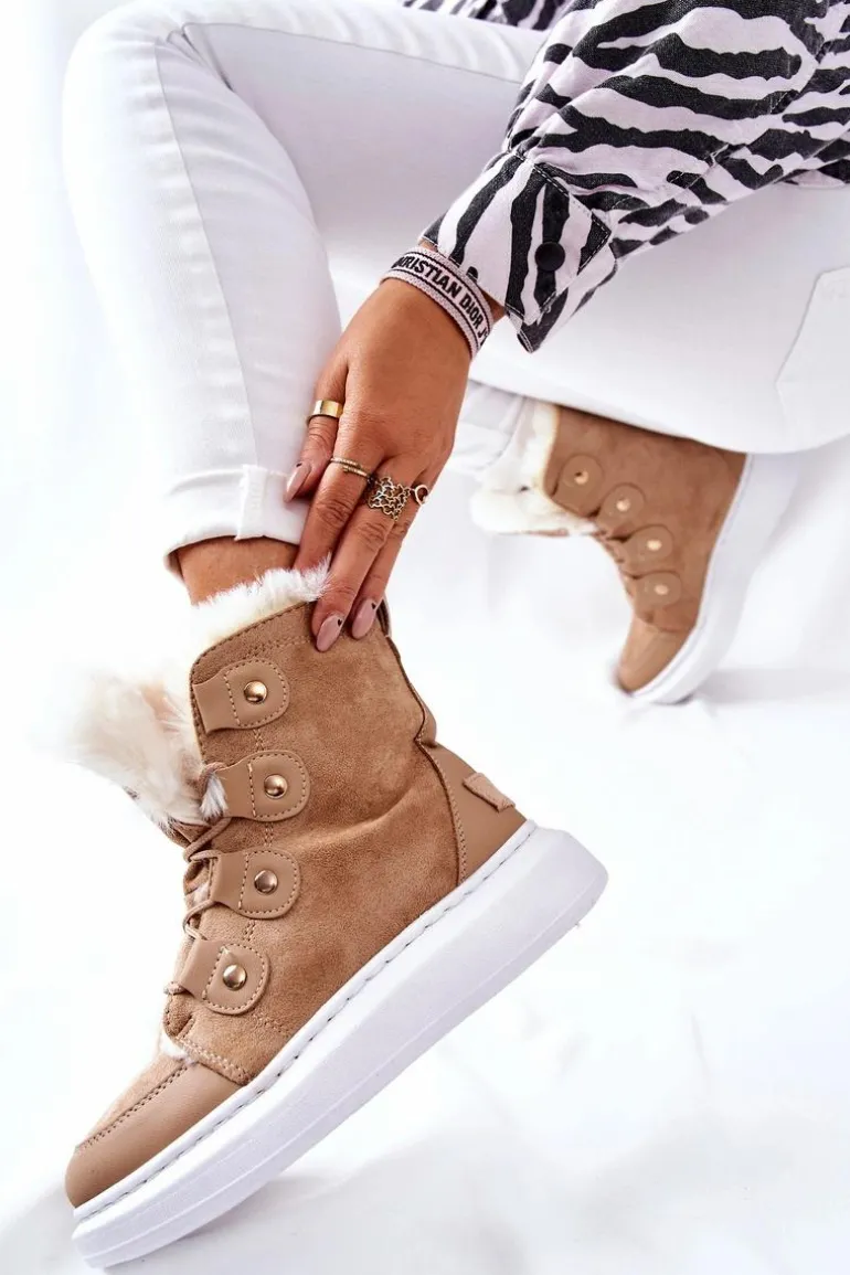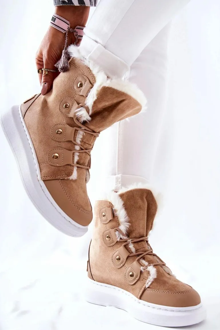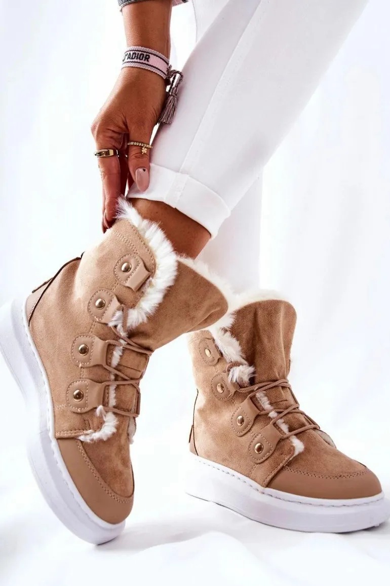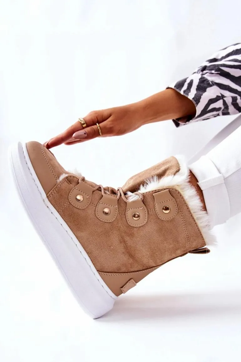 Piękne botki wykonane z zamszowej eko skóry. Posiadają bardzo ciepłe wypełnienie w postaci miłego w dotyku futerka. Buty posiadają platformę oraz wiązanie, dzięki któremu można dopasować je do własnych potrzeb. Idealnie sprawdzą się w zimowe dni! Nie czekaj dłużej i kup zanim znikną ! Przy wyborze rozmiaru prosimy sugerować się tabelą rozmiarów.