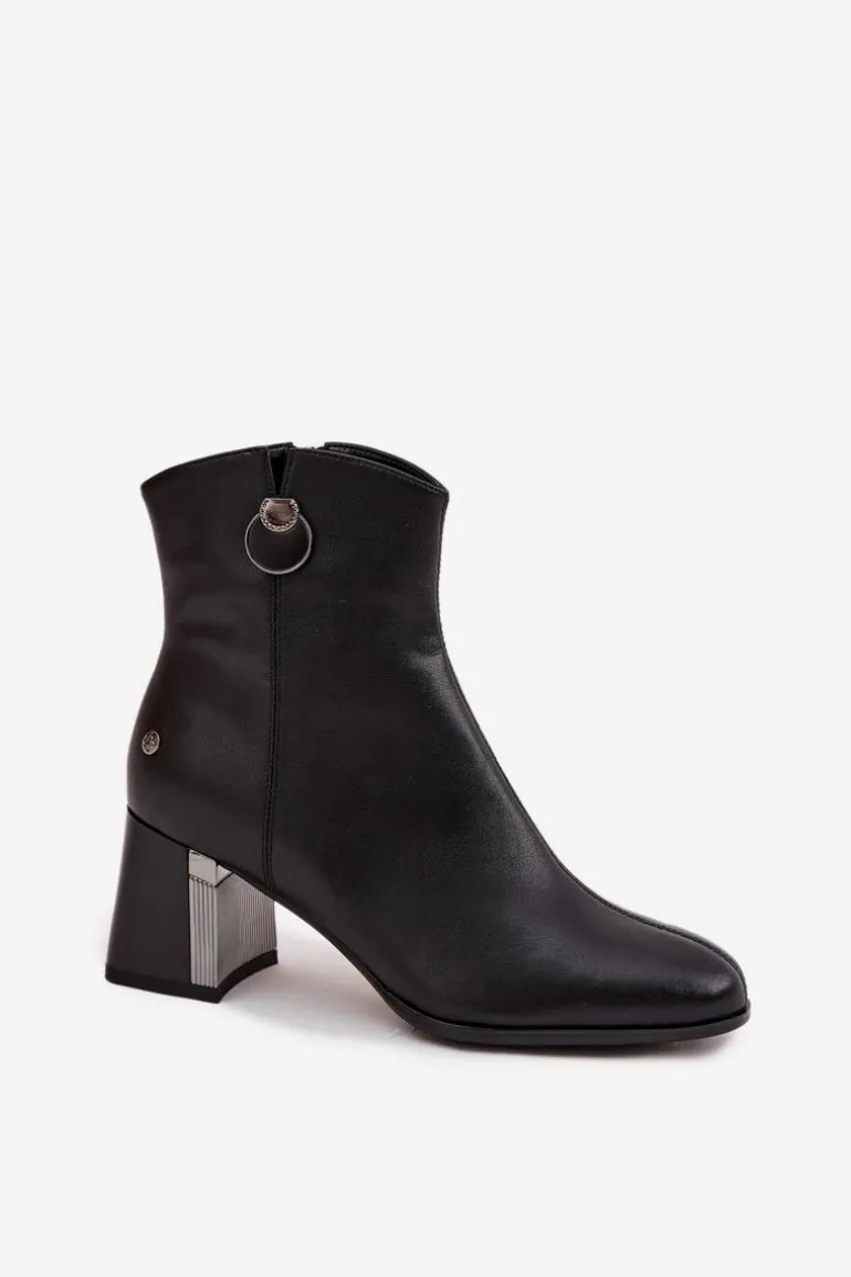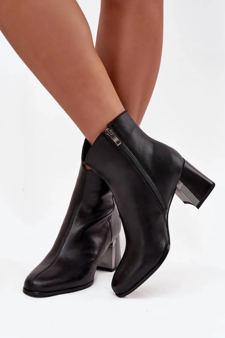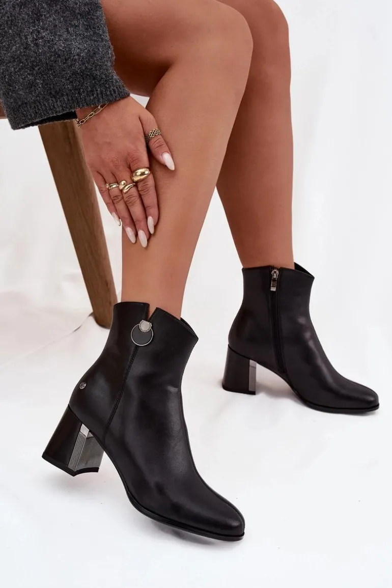 Eleganckie botki damskie marki Maciejka to propozycja dla kobiet ceniących klasykę w nowoczesnym wydaniu. Wykonane z wysokiej jakości naturalnej skóry, prezentują się szykownie i ponadczasowo. Model osadzony został na stabilnym obcasie typu słupek, który dodaje sylwetce smukłości, jednocześnie zapewniając wygodę podczas noszenia. Zaokrąglone noski. Praktyczne zapięcie na zamek ułatwia zakładanie. Wnętrze zostało ocieplone, dzięki czemu buty świetnie sprawdzą się w chłodniejsze dni. Subtelny, ozdobny detal umieszczony z boku cholewki dodaje całości uroku. To idealne botki na sezon jesienno-zimowy – eleganckie i stylowe. Przy wyborze rozmiaru prosimy sugerować się tabelą rozmiarów.