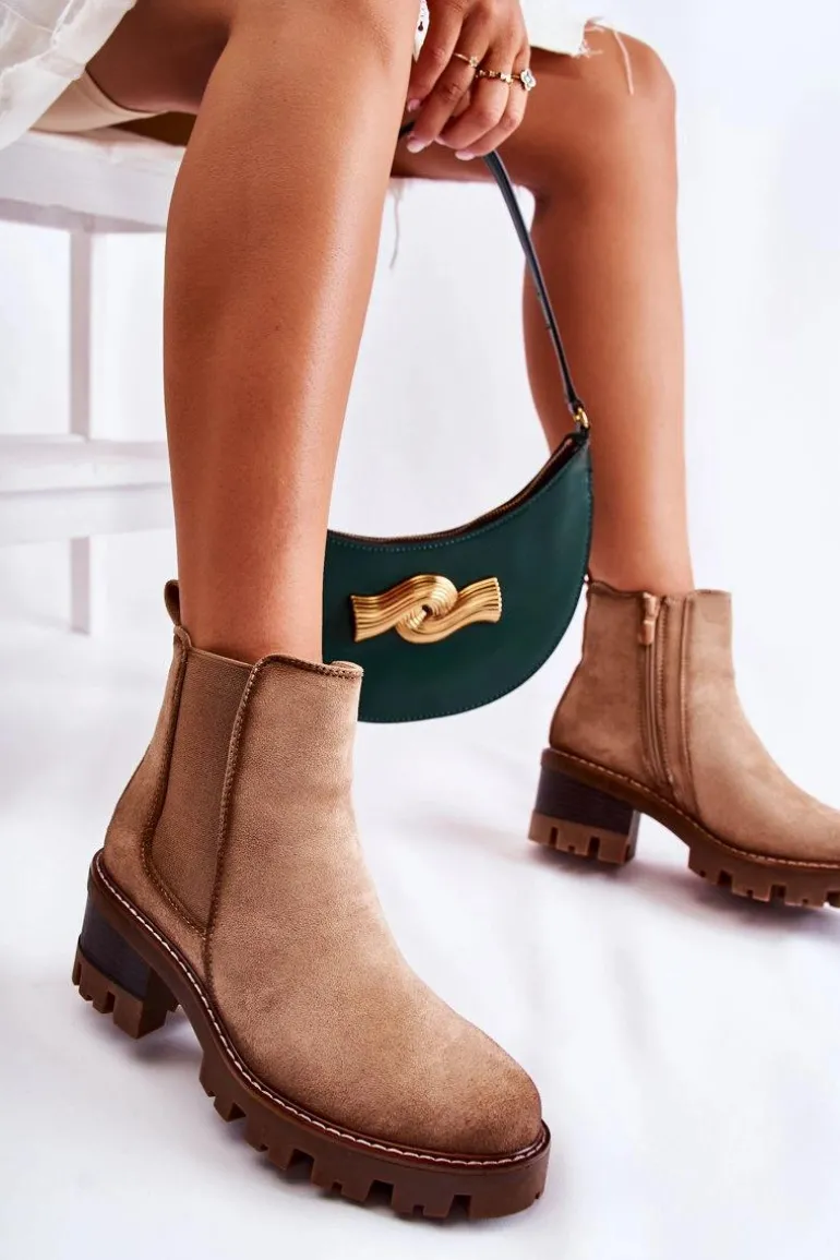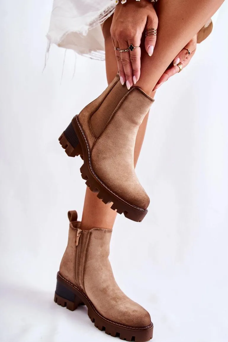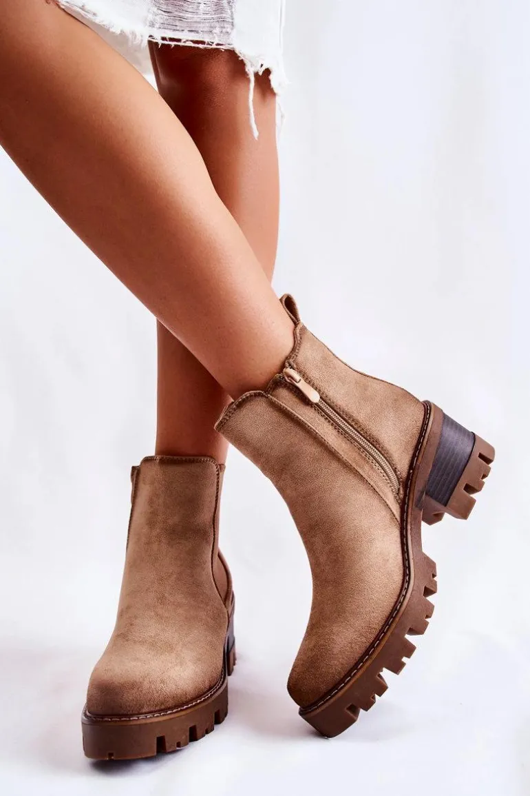 Ocieplane Damskie Botki Na Suwak Beżowe Lenaris