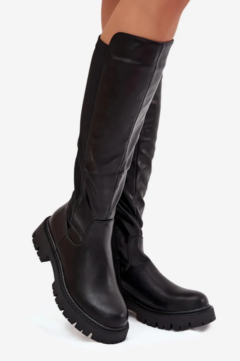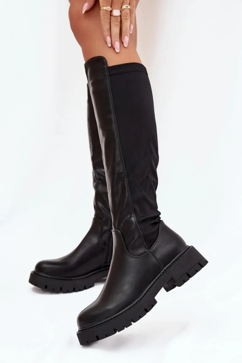 Kozaki damskie wykonane z połączenia eko skóry i materiału tekstylnego to wygodny i uniwersalny model na chłodniejsze dni. Wnętrze ocieplone kocem obuwniczym gwarantuje komfort i ciepło, a niski obcas typu klocek zapewnia stabilność i wygodę podczas codziennego noszenia. Klasyczne, zaokrąglone noski. Model zapinany na zamek ułatwia zakładanie i świetnie dopasowuje się do nogi. To kozaki, które idealnie sprawdzą się zarówno w codziennych, jak i bardziej eleganckich stylizacjach. Przy wyborze rozmiaru prosimy sugerować się tabelą rozmiarów.
