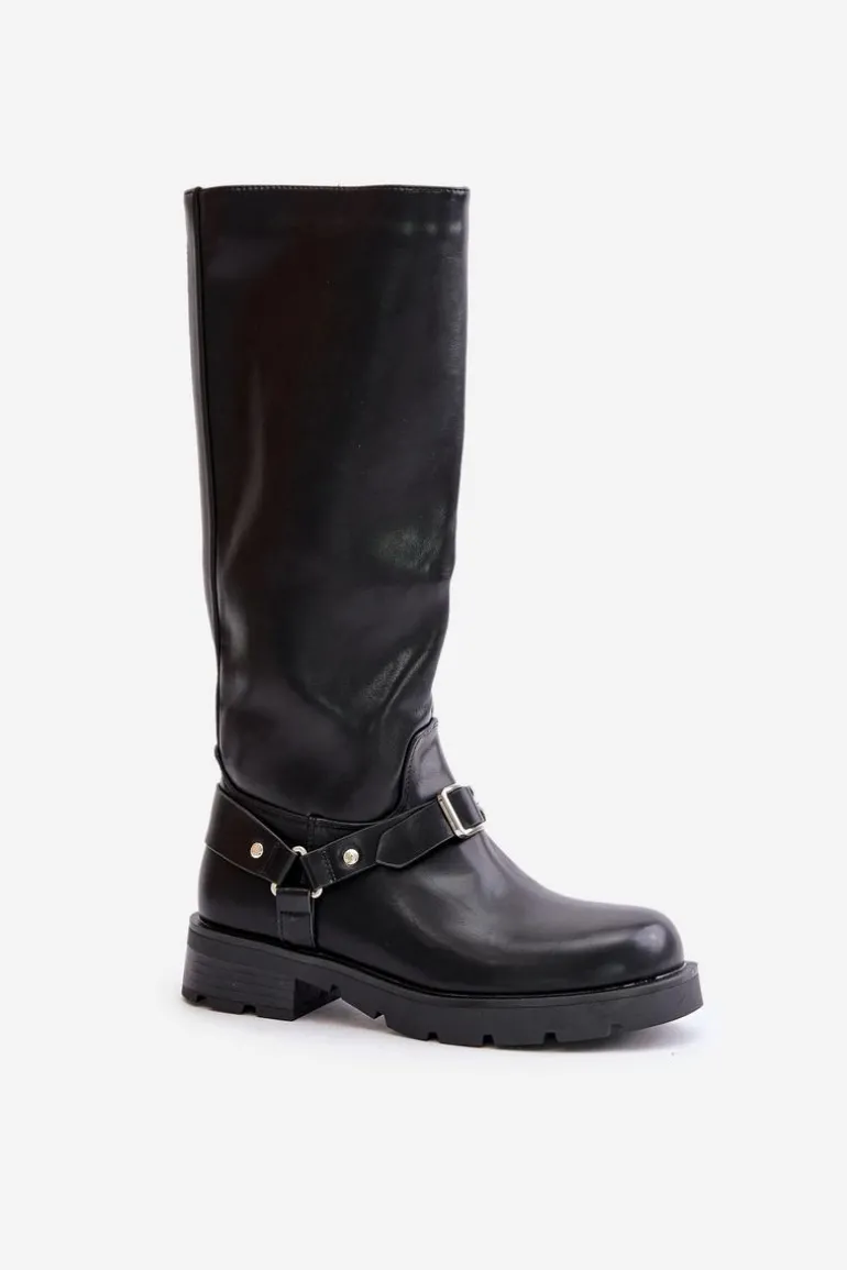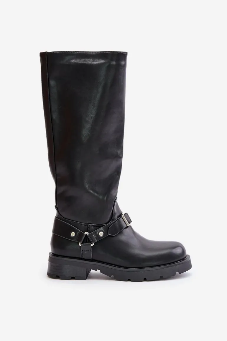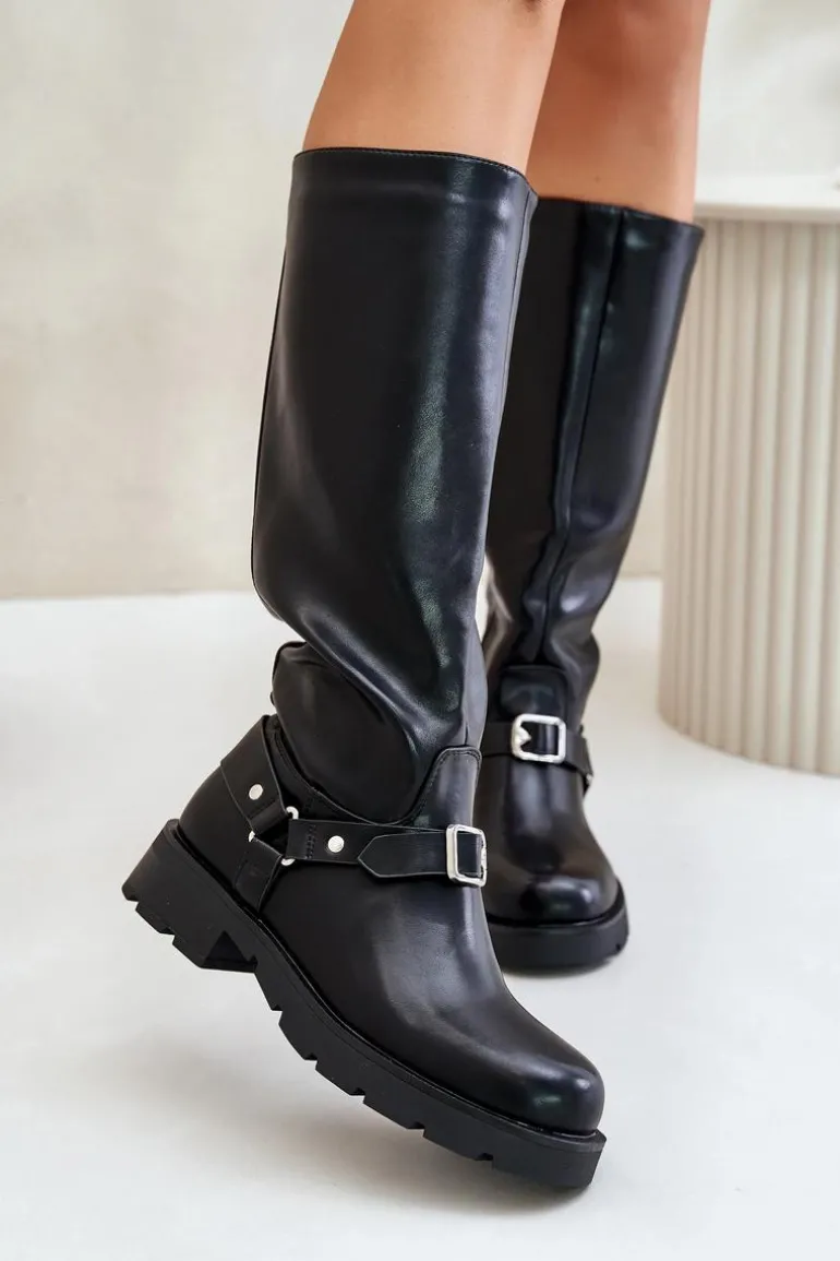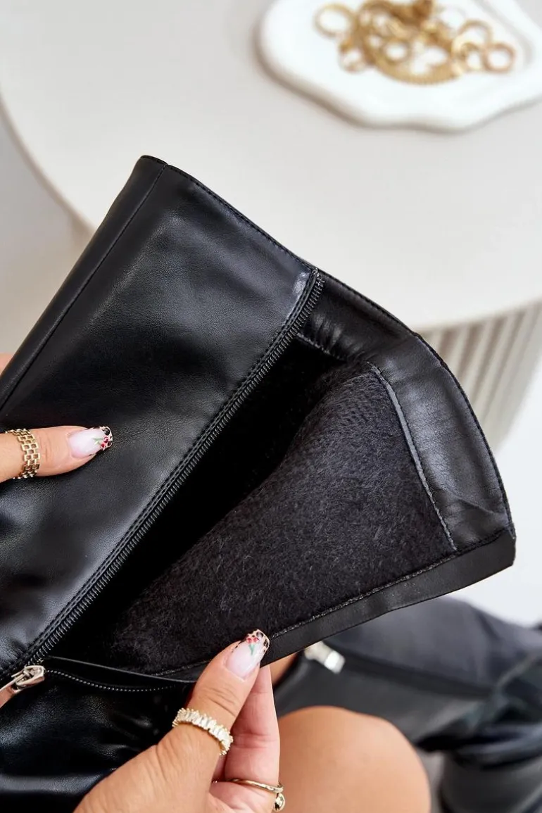 Ocieplane Kozaki Damskie Na Zamek Eko Skórzane Czarne Tialethe