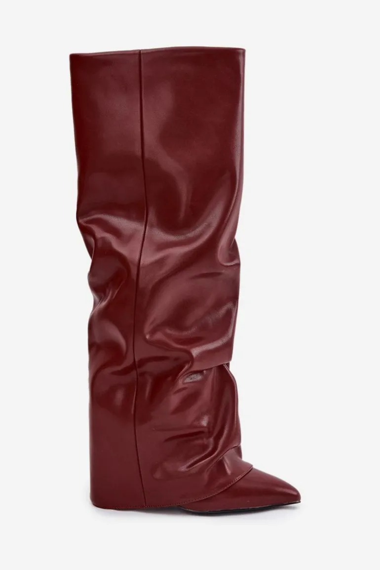 Kozaki damskie z wywiniętą cholewką to prawdziwy must-have na nadchodzący sezon jesienno-zimowy! Wsuwane i osadzone na stabilnym obcasie typu słupek, gwarantują wygodę i pewny krok. Ocieplenie zapewnia komfort w chłodniejsze dni, a wywinięta cholewka, nachodząca na obcas, dodaje im oryginalnego charakteru. Szpiczaste noski podkreślają kobiecy styl, dzięki czemu kozaki świetnie sprawdzą się w efektownych, zimowych stylizacjach. Przy wyborze rozmiaru prosimy sugerować się tabelą rozmiarów.