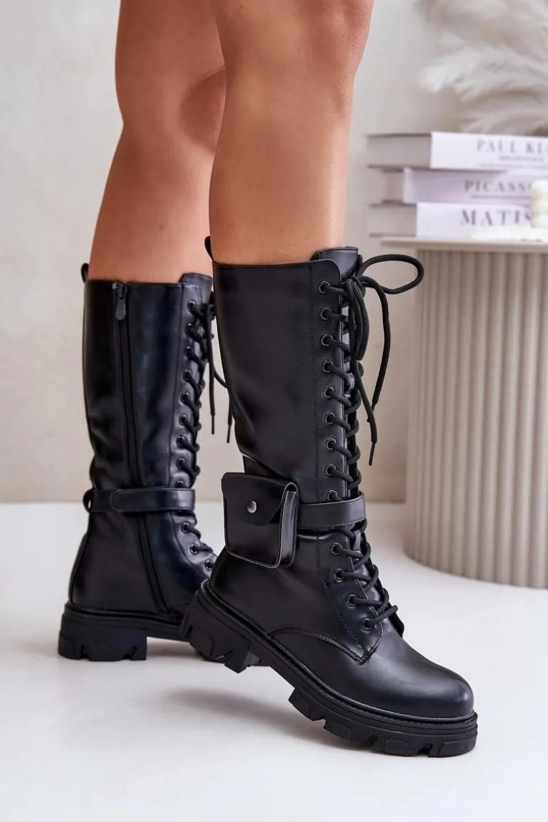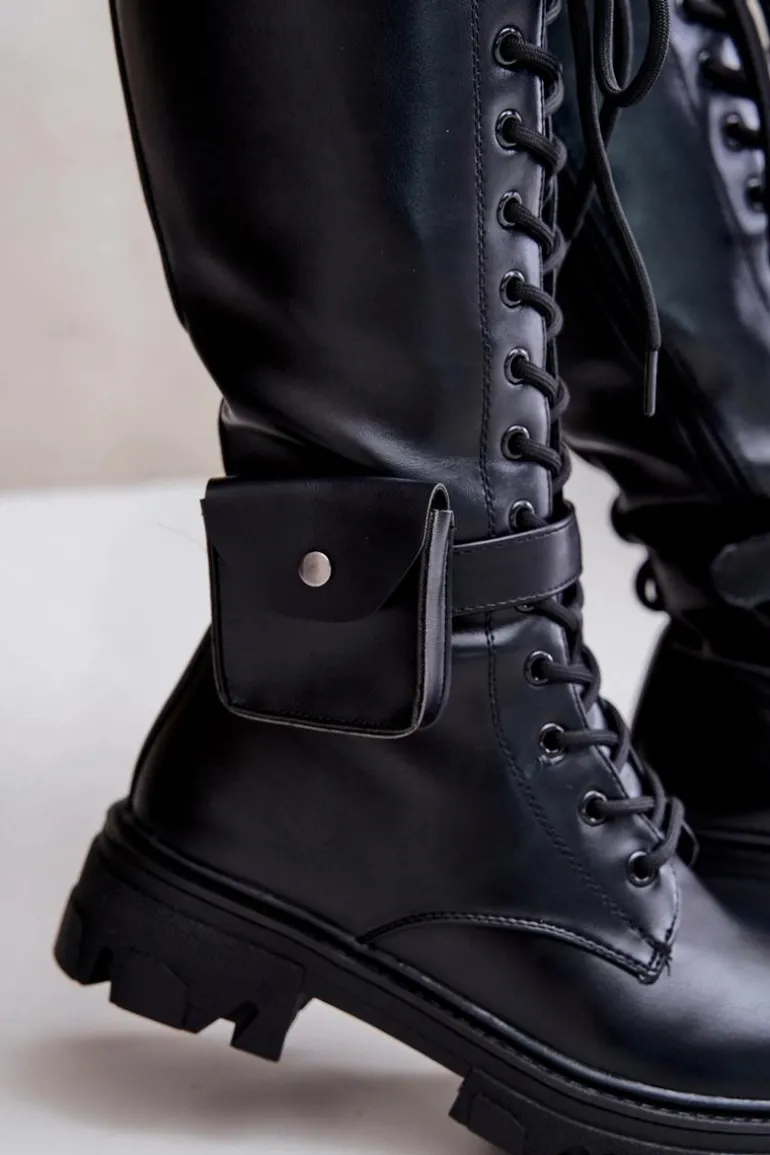 Stylowe kozaki glany wykonane z eko skóry to wyjątkowy model dla miłośników modnych akcentów. Cholewka ozdobiona jest małą saszetką na pasku, który można łatwo odpiąć. Zaokrąglone noski zapewniają komfort, a wnętrze ocieplane kocem obuwniczym gwarantuje ciepło w chłodniejsze dni. Idealne na sezon jesienno-zimowy, łączą funkcjonalność i styl. Przy wyborze rozmiaru prosimy kierować tabelą rozmiarów.