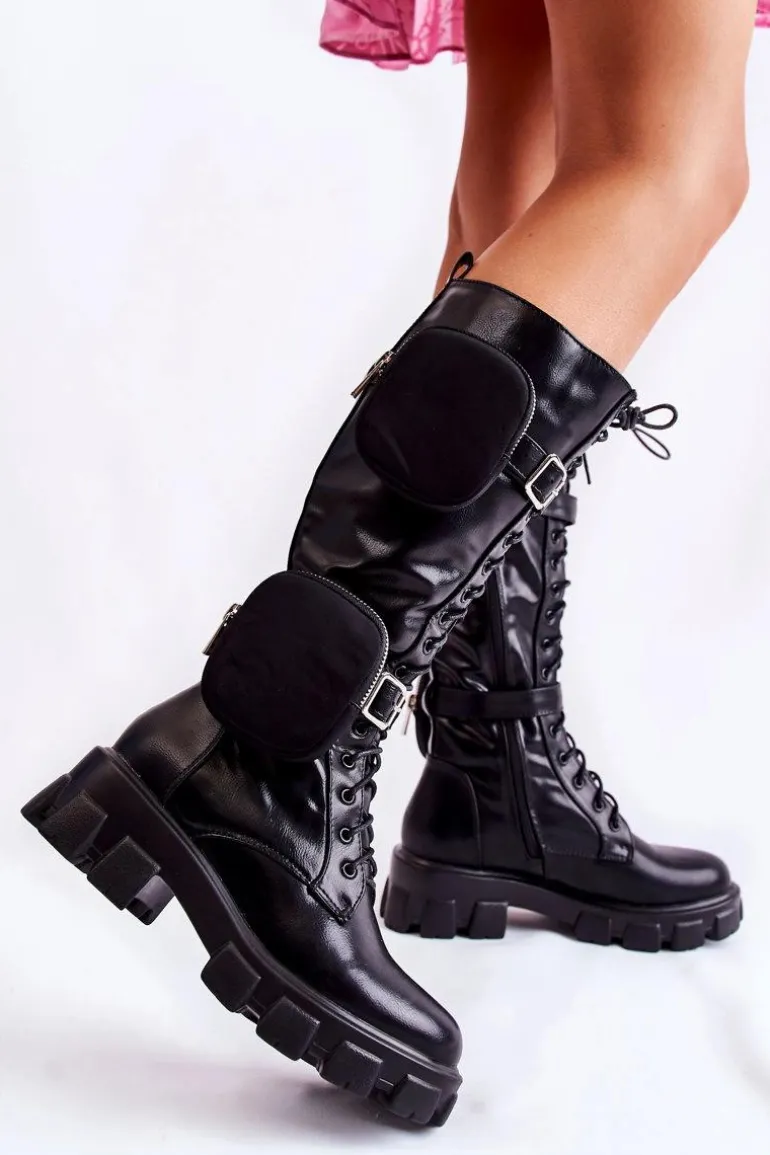 Kozaki z ozdobnymi nerkami Idealnie podkreślą każdą stylizację. Wierzch kozaków wykonany jest ze skóry ekologicznej. Wnętrze butów pokryte jest miękkim w dotyku ociepleniem.