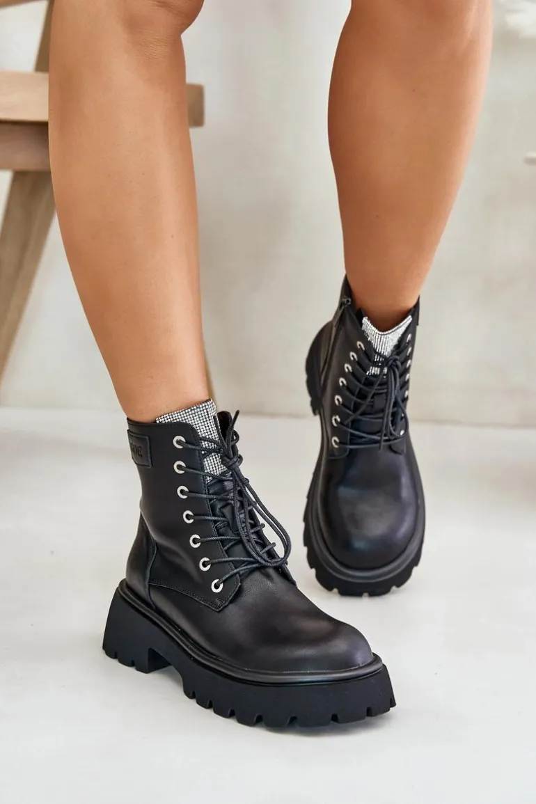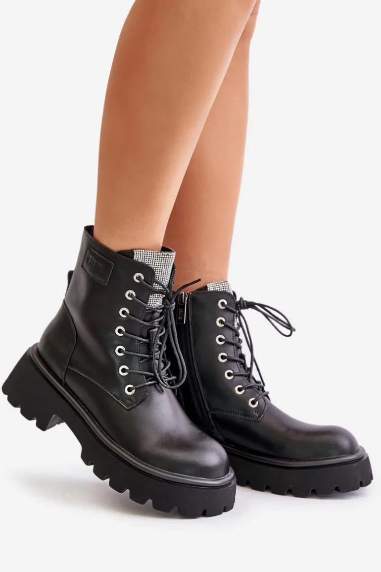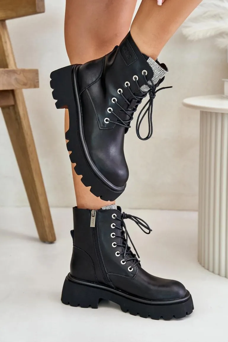 Damskie botki workery od marki Goe to stylowa propozycja dla miłośniczek modnych, a jednocześnie komfortowych rozwiązań. Wykonane z wysokiej jakości skóry naturalnej, łączą elegancję z trwałością. Osadzone na płaskim obcasie i solidnej platformie, zapewniają stabilność oraz wygodę podczas noszenia. Zaokrąglone noski dodają im subtelności, a ocieplony kocem obuwniczym środek gwarantuje ciepło w chłodne dni. Dodatkowym atutem są cyrkonie zdobiące język, które dodają wyjątkowego blasku i charakteru. Przy wyborze rozmiaru prosimy kierować się tabelą rozmiarów