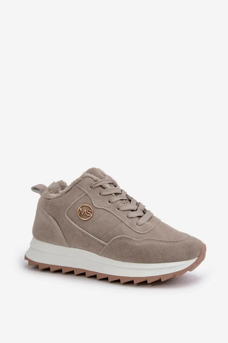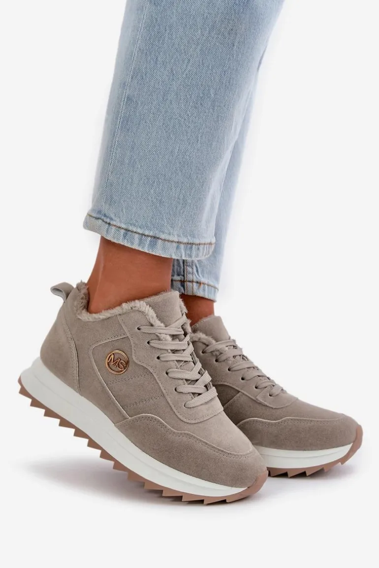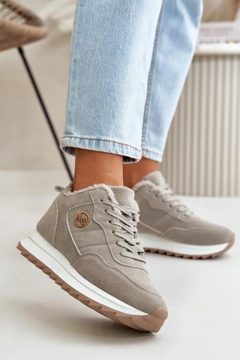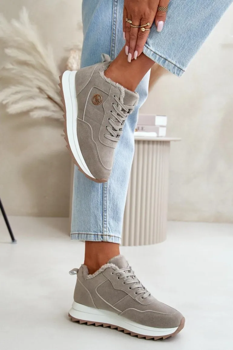 Ocieplane Skórzane Buty Sportowe Na Platformie Szare Adite