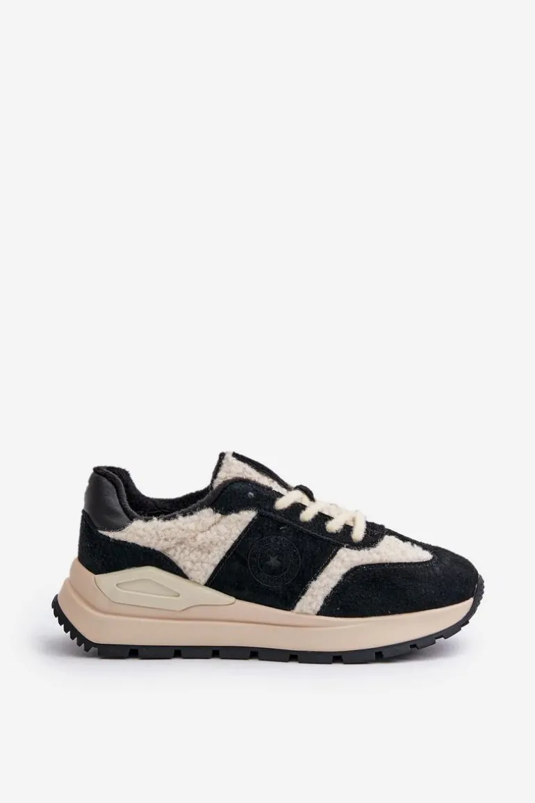 Sneakersy damskie od marki Big Star. Wykonane z połączenia naturalnego zamszu i materiału tekstylnego. Osadzone na platformie. Środek lekko ocieplony kocem obuwniczym. Model ten posiada wkładkę HI POLLY SYSTEM, która pochodzi z recyklingu, jest odporna na ścieranie i odkształcenia oaz absorbuje wilgoć. Modny fason, który idealnie uzupełni jesienne stylizacje! Przy wyborze rozmiaru prosimy sugerować się tabelą rozmiarów.