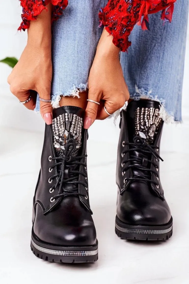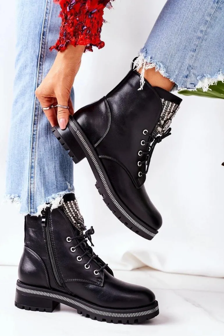 Wyjątkowe botki damskie wykonane z eko skóry. Workery są ocieplone miłym w dotyku kocem obuwniczym. Przy wyborze rozmiaru prosimy sugerować się tabelą rozmiarów.