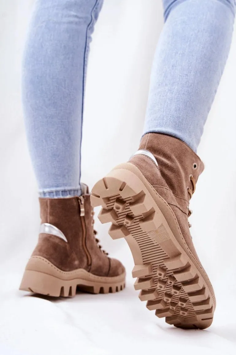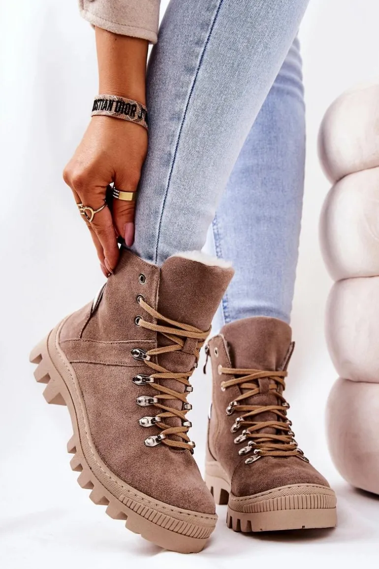 Trapero-botki zostały wykonane z naturalnej skóry. Posiadają traperową, grubą podeszwę, która będzie idealnie izolować od zimnego podłoża. Wiązanie sprawia, że można dopasować je do tęgości nogi. Buty w środku posiadają ocieplenie w postaci koca obuwniczego oraz sztywny zapiętek. Sprawdź pozostałą naszą ofertę ocieplanych botków! Przy wyborze rozmiaru prosimy sugerować się tabelą rozmiarów.