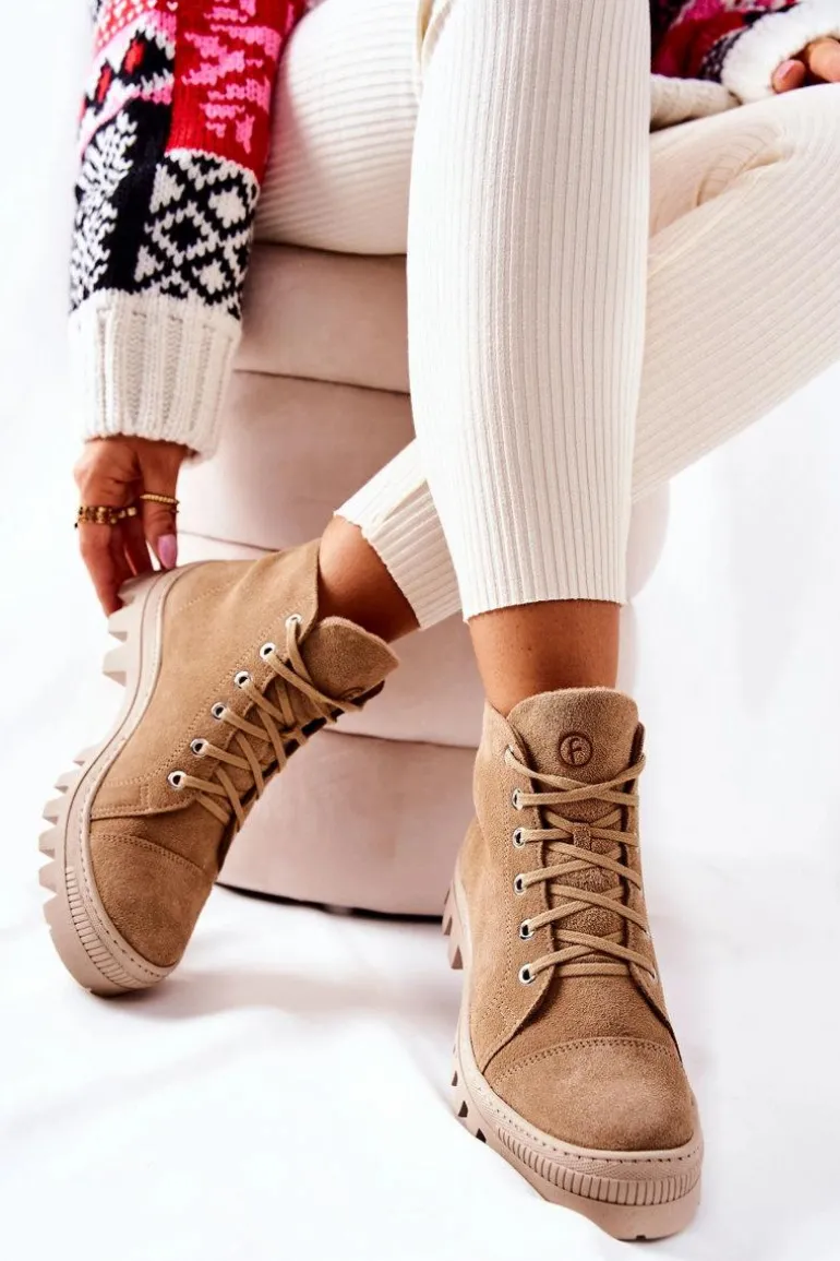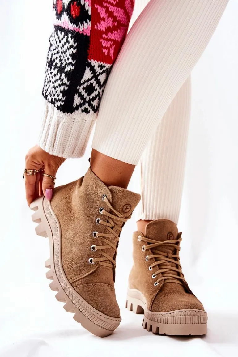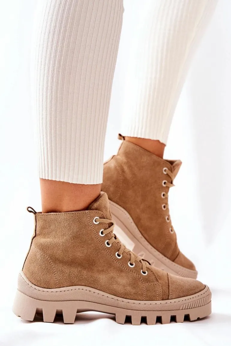 Wysokie trampki-botki zostały wykonane z naturalnej skóry. Posiadają traperową, grubą podeszwę, która będzie idealnie izolować od zimnego podłoża. Wiązanie sprawia, że można dopasować je do tęgości nogi. Trampki w środku posiadają ocieplenie w postaci koca obuwniczego oraz sztywny zapiętek. Sprawdź pozostałą naszą ofertę ocieplanych trampków i botków! Przy wyborze rozmiaru prosimy sugerować się tabelą rozmiarów.