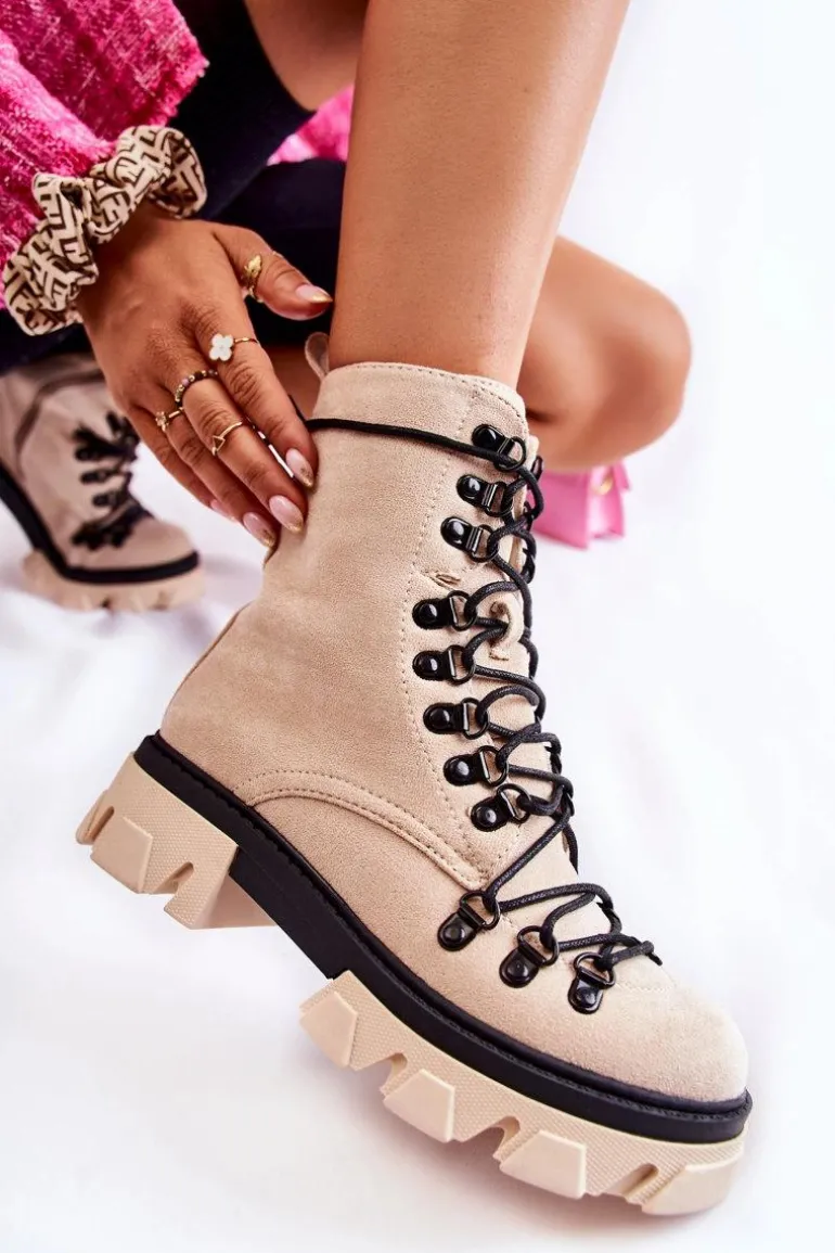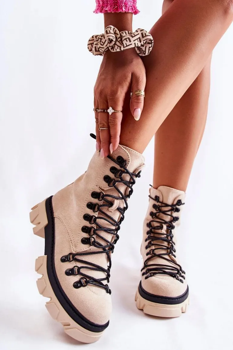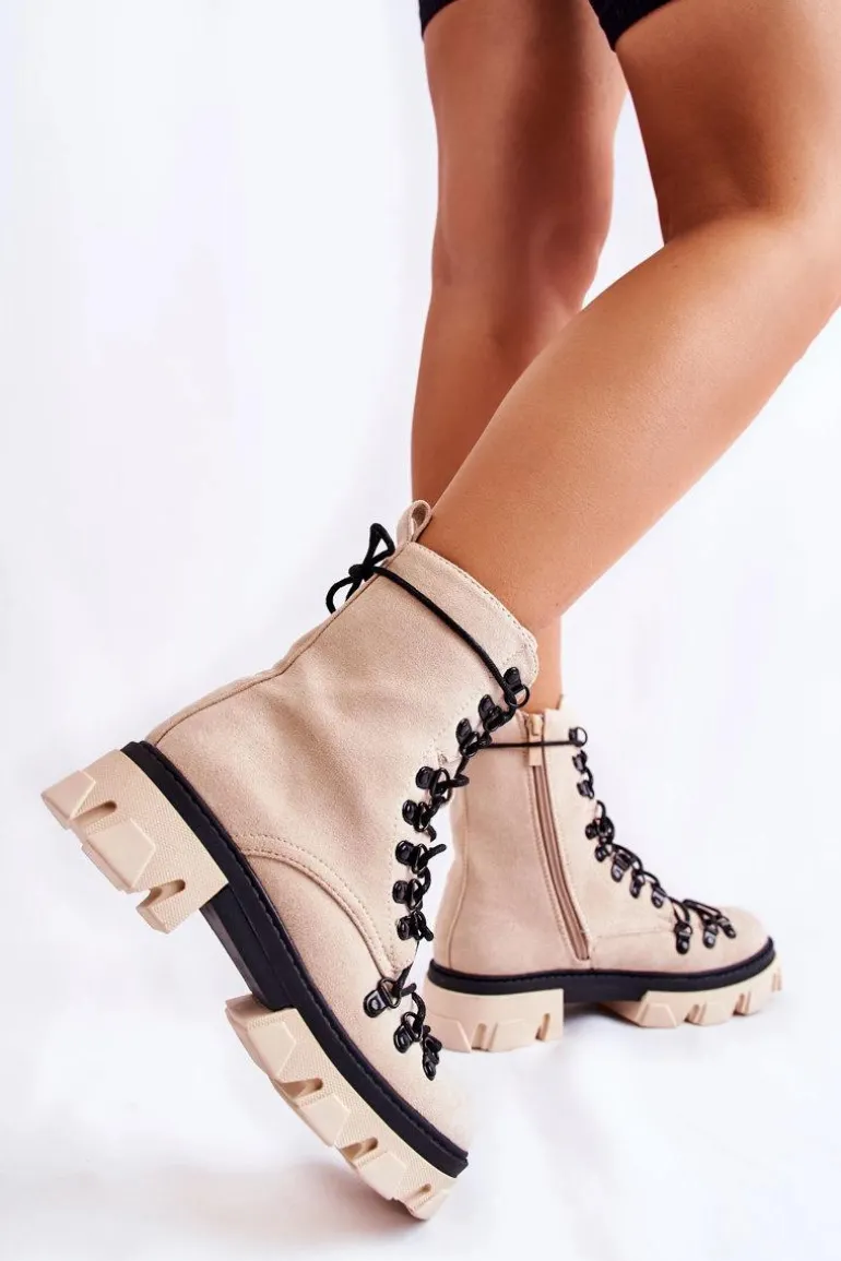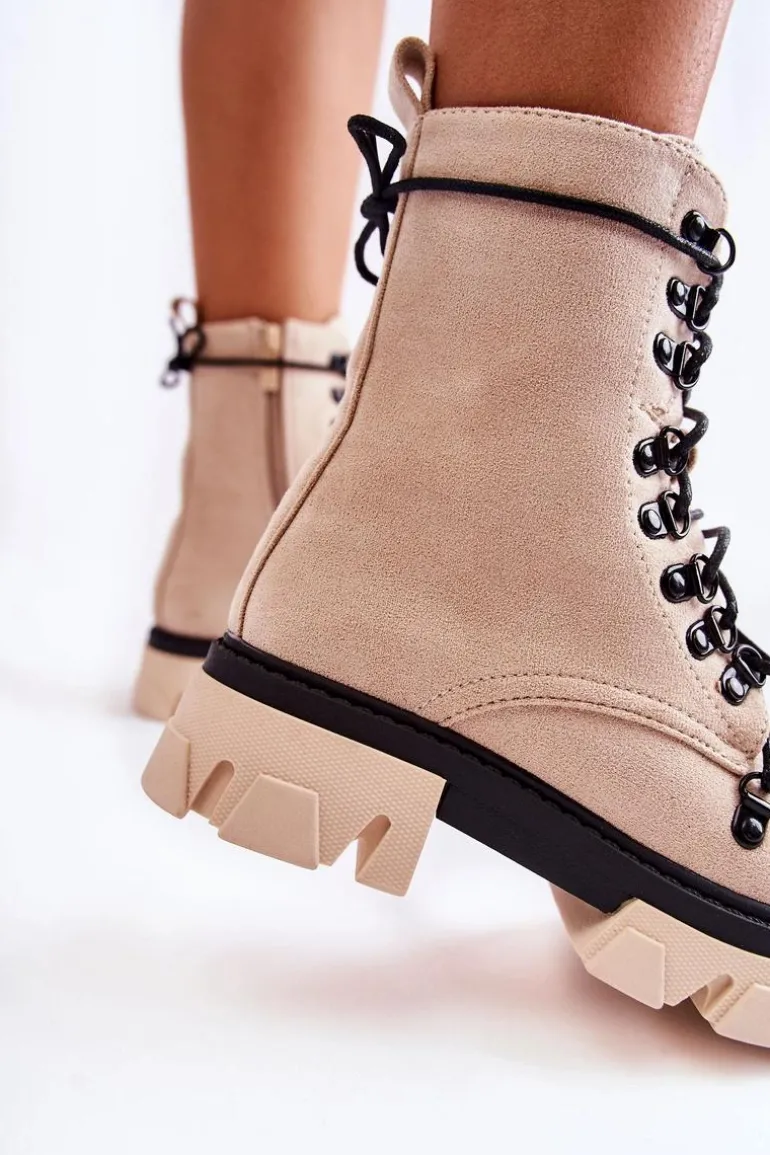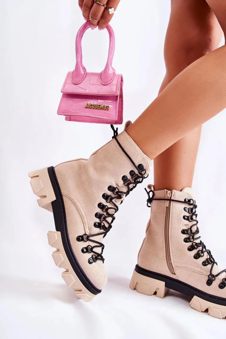 Świetne botki na chłodniejsze dni! Wykonane z przyjemnego w dotyku eko zamszu. Wnętrze ocieplone miłym w dotyku futerkiem. Posiadają suwak ułatwiający zakładanie obuwia oraz wiązanie. Botki z usztywnianym zapiętkiem. Masywna platforma z płaskim obcasem gwarantuje stabilność. Koniecznie musisz je mieć, nie zwlekaj z zakupem! Przy wyborze rozmiaru prosimy sugerować się tabelą rozmiarów.