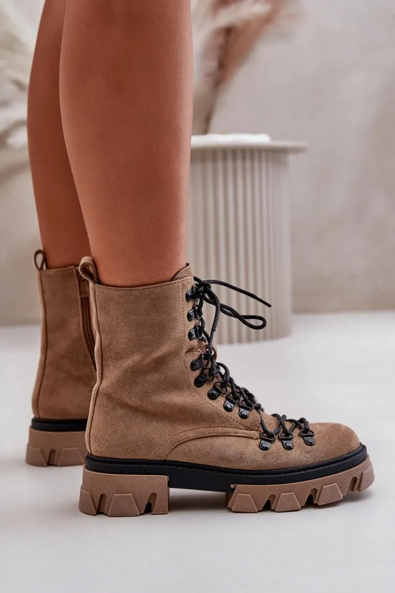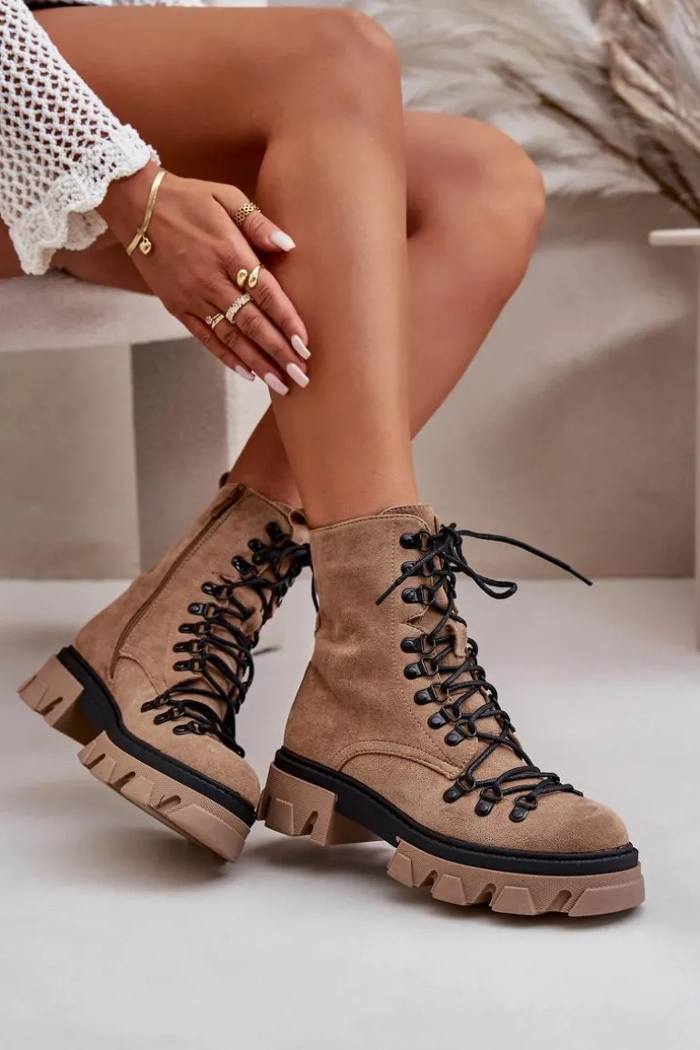 Świetne botki na chłodniejsze dni! Wykonane z przyjemnego w dotyku eko zamszu. Wnętrze ocieplone miłym w dotyku futerkiem. Posiadają suwak ułatwiający zakładanie obuwia oraz wiązanie. Botki z usztywnianym zapiętkiem. Masywna platforma z płaskim obcasem gwarantuje stabilność. Koniecznie musisz je mieć, nie zwlekaj z zakupem! Przy wyborze rozmiaru prosimy sugerować się tabelą rozmiarów.
