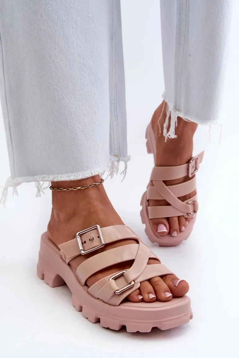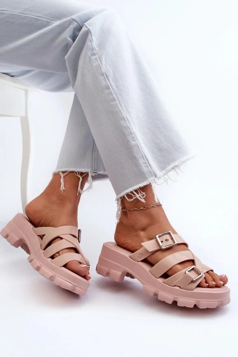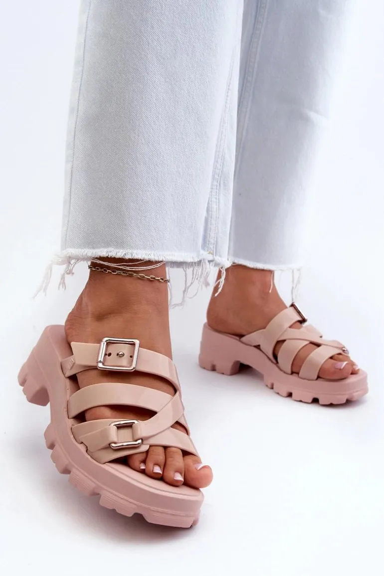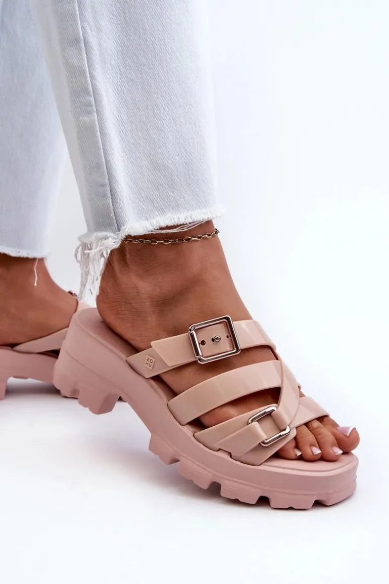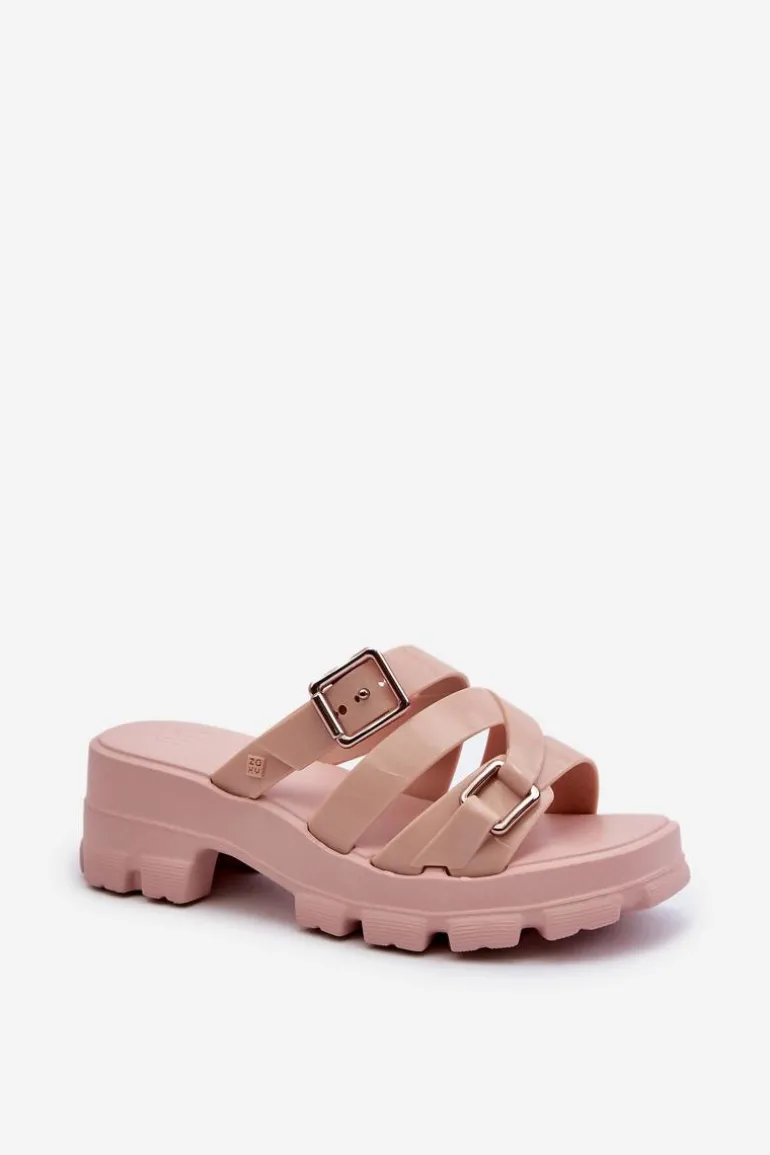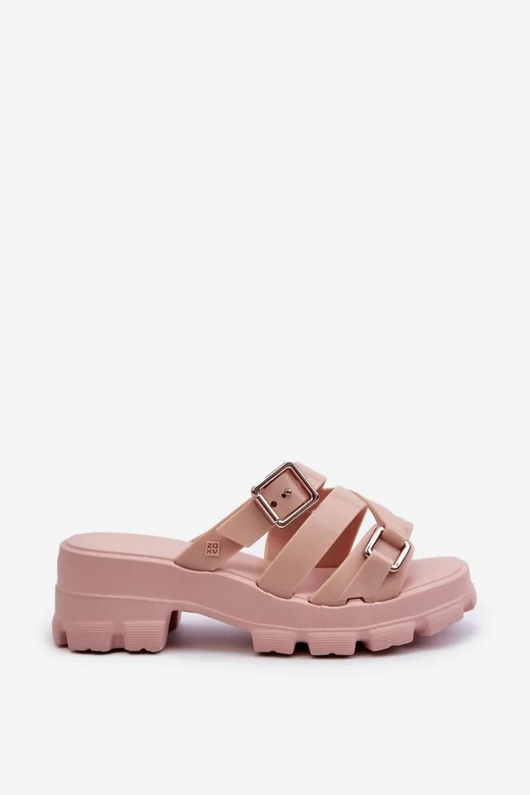Pachnące Klapki Damskie Na Niskim Obcasie ZAXY NN285044 Jasnoróżowe