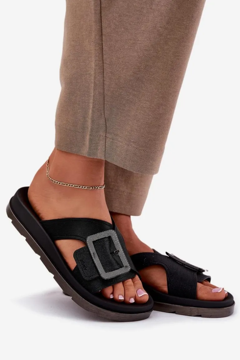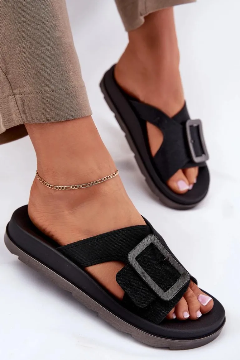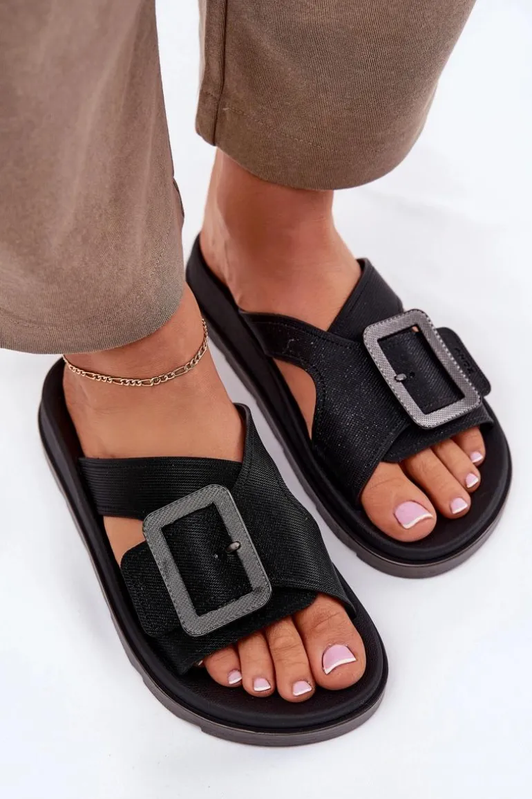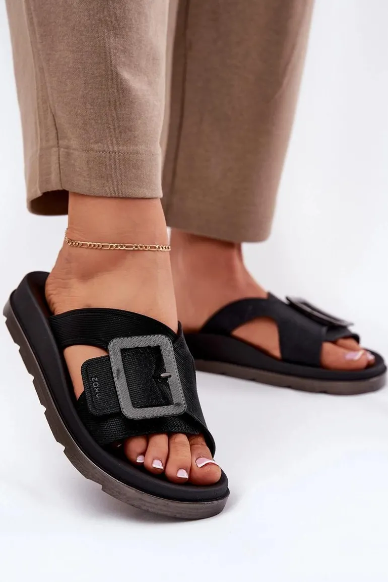 Pachnące Klapki Damskie Z Ozdobną Klamrą ZAXY RR285078 Czarne