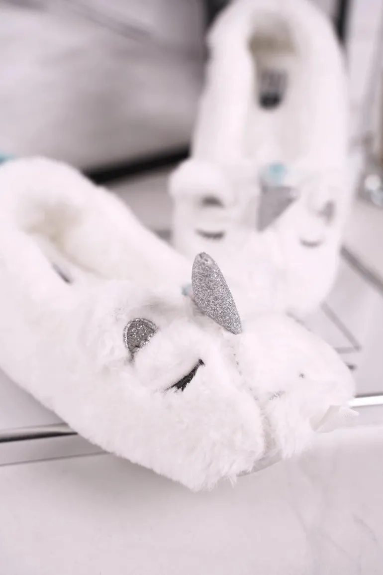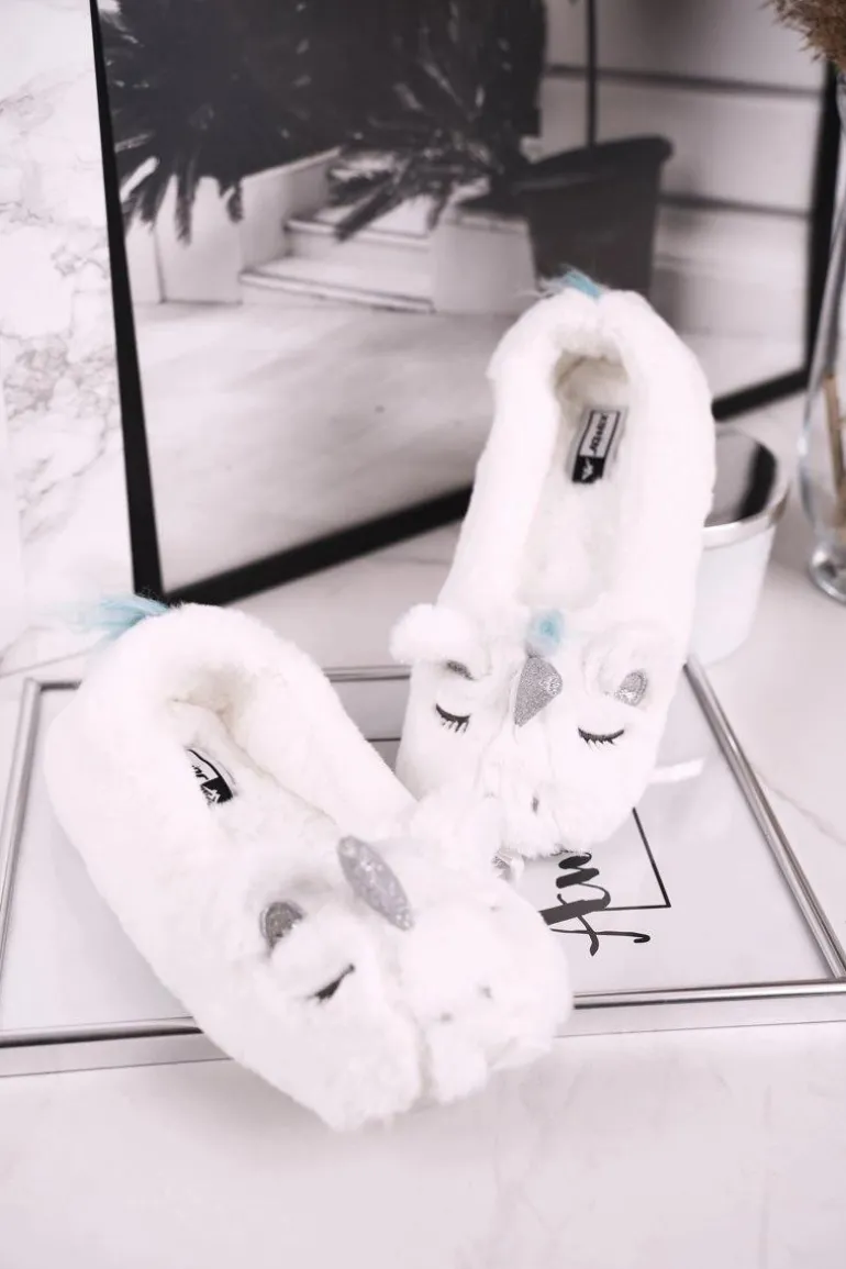 Papcie Damskie Futrzane Jednorożce Białe Rainbow
