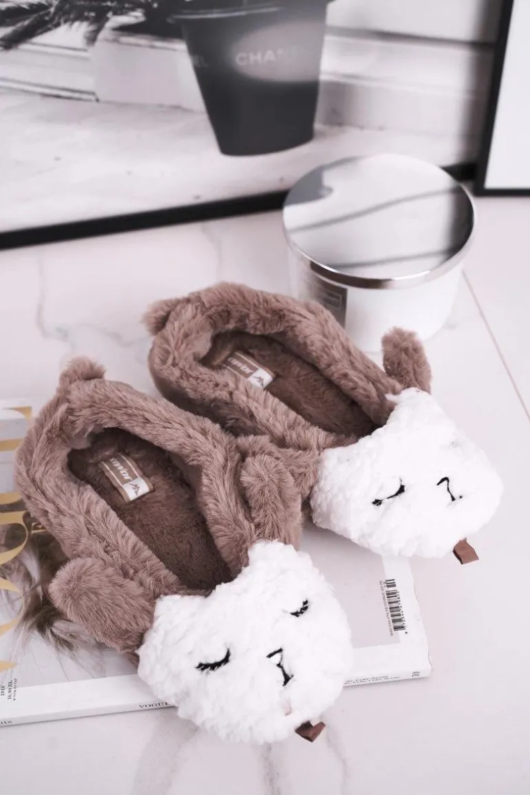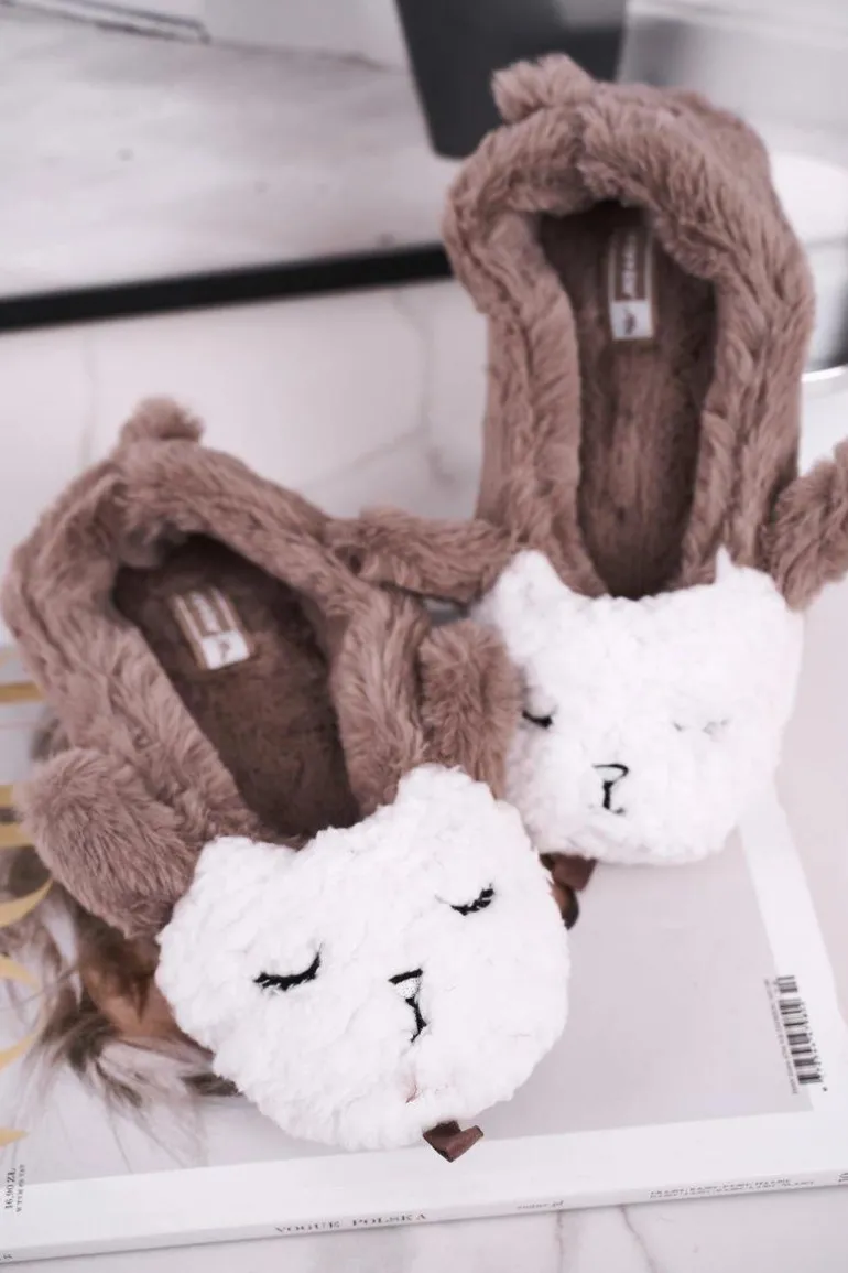 Papcie Damskie Futrzane Owieczki Brązowe Ben