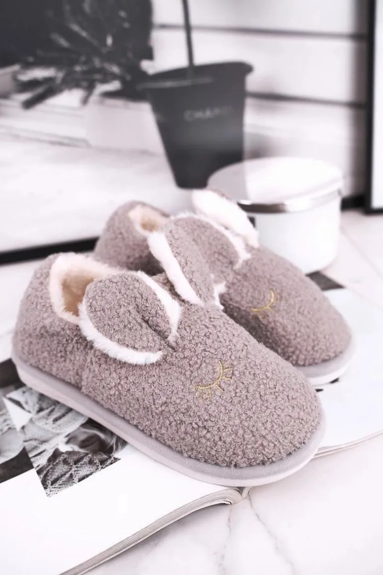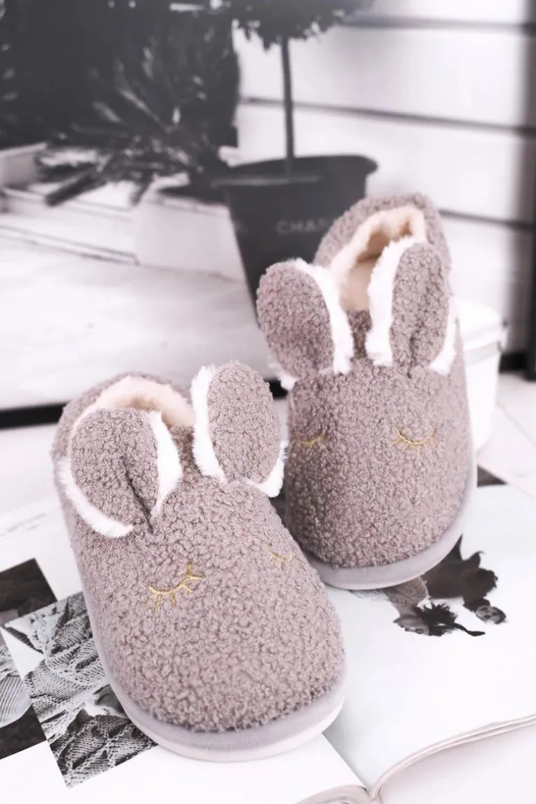 Papcie Damskie Futrzane Zajączek Szare Goody