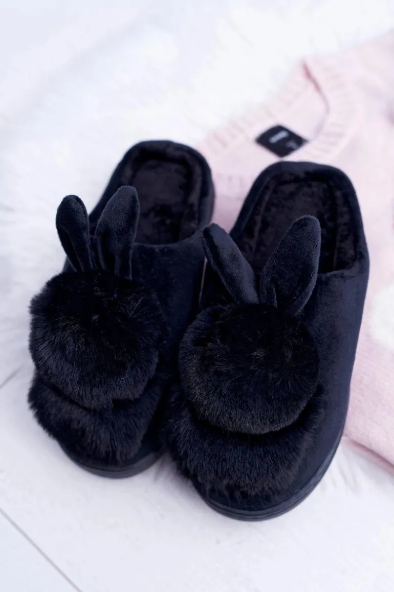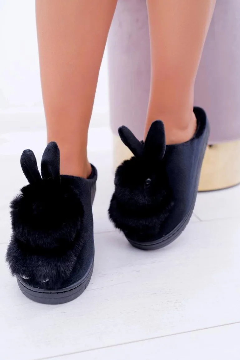 Papcie Damskie Klasyczne Z Królikiem Czarne Howi
