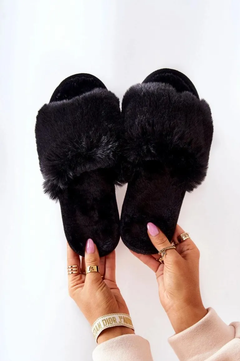 Papcie Damskie Z Futerkiem Czarne Trusted