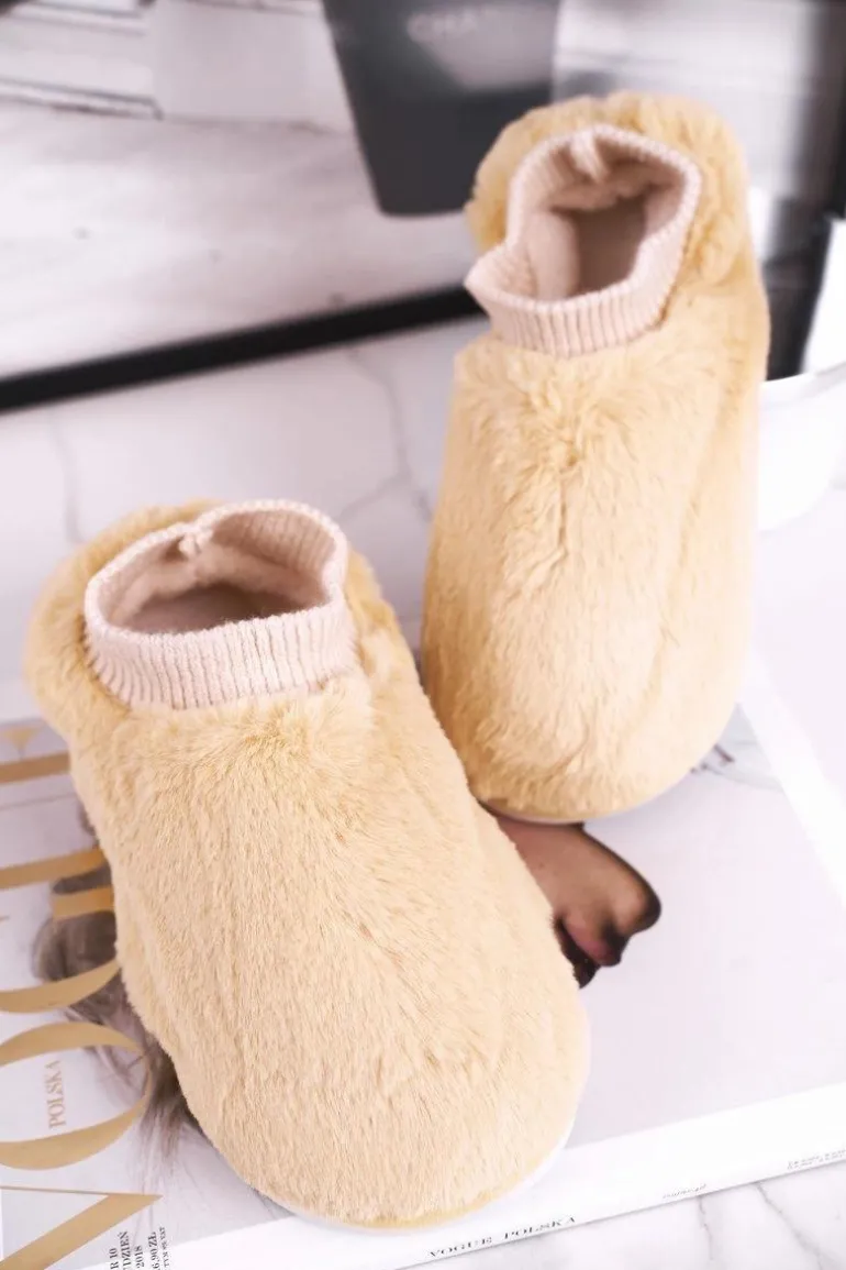 Papcie Damskie Z Futerkiem I Skarpetką Żółte Yeti